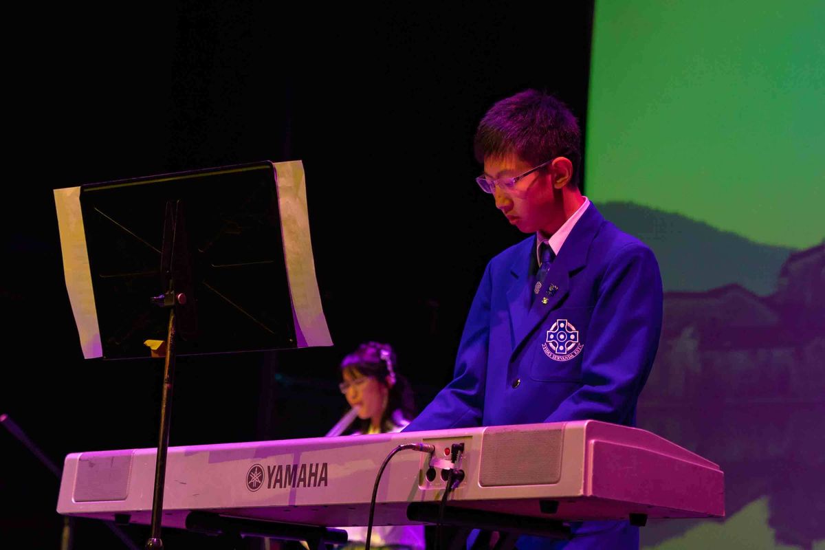 The evening entailed both individual and group performances. Year 10 student, Chloe Haerewa is a familiar figure on stage, having played lead roles in Middle College productions and many music department events. She gave a strong performance of ‘Tangaroa Whakamautai’ to a backdrop of ever-changing New Zealand scenery. A new addition to the evening followed with Chinese students, Winnie Liang (Year 10) on Chinese flute and Peter Guan (Year 10) on keyboard performing a Chinese folk song, ‘Lac Troi and Fairies and the Greenland. Melody Lui-Webster (Year 9) finished this section of the evening with a graceful ‘Loimata o Le Fia Fia.