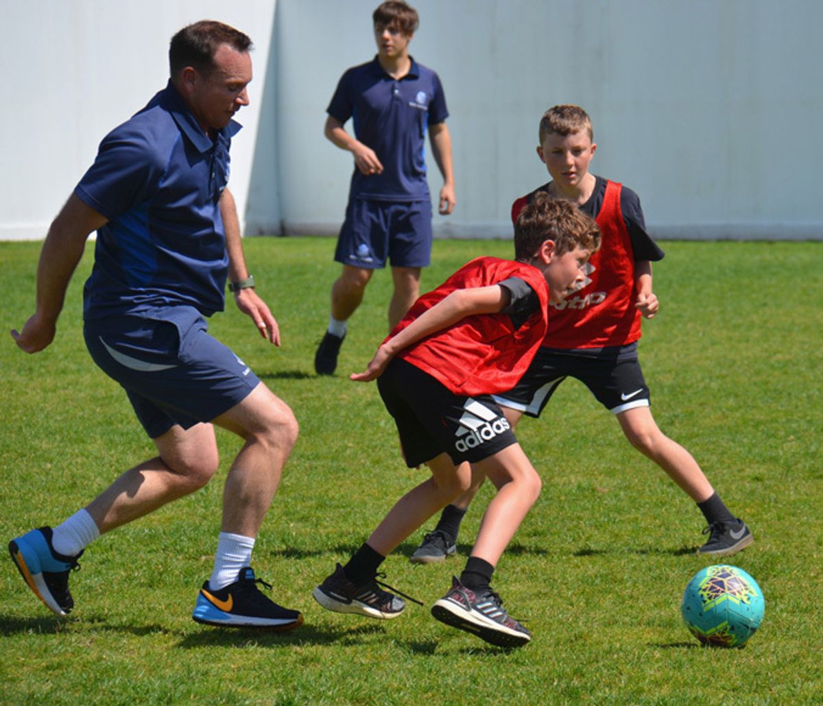 Note: As this was a mufti day, all the boys and staff are in mufti with the boys playing in red bibs.