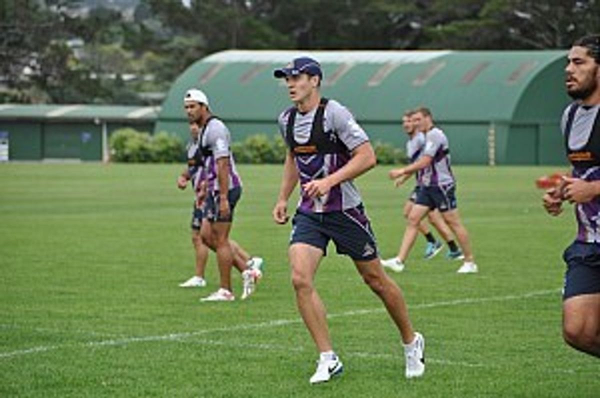 Returning to the College sports grounds last week was Old Collegian and Melbourne Storm winger, Matt Duffie, when the league team paid a training visit to the College. The Storm were the second Australian side to train at the sports facilities last week after Sydney based Canterbury-Bankstown Bulldogs visited a day earlier. Both teams were in New Zealand to compete in the NRL Auckland Nines at Eden Park over the weekend.
