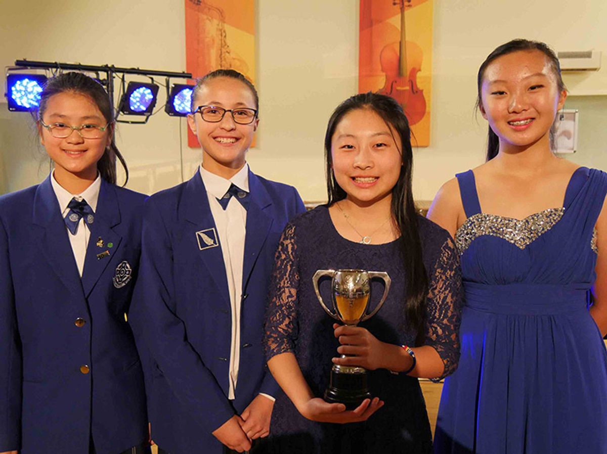 Each of the 14 finalists gave a fantastic performance for which they can all be proud – as were their families! A winner was selected from each of the four sections – string, wind, voice, piano – with one chosen as the overall winner. Year 10 student, Catherine Chang, won the wind and overall title playing ‘Concertino for Flute, Opus 107’ (C. Chaminade). Year 9, Esther Oh won the strings on violin, fellow Year 9 student, Chloe Haerewa won the voice and Year 7 student, Lisa Sun won the piano section; all giving strong performances.