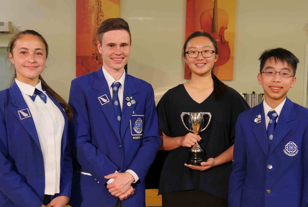 Each of the 14 finalists gave a fantastic performance for which they can all be proud – as were their families! A winner was selected from each of the four sections – string, wind, voice, piano – with one chosen as the overall winner. Year 10 student, Catherine Chang, won the wind and overall title playing ‘Concertino for Flute, Opus 107’ (C. Chaminade). Year 9, Esther Oh won the strings on violin, fellow Year 9 student, Chloe Haerewa won the voice and Year 7 student, Lisa Sun won the piano section; all giving strong performances.
