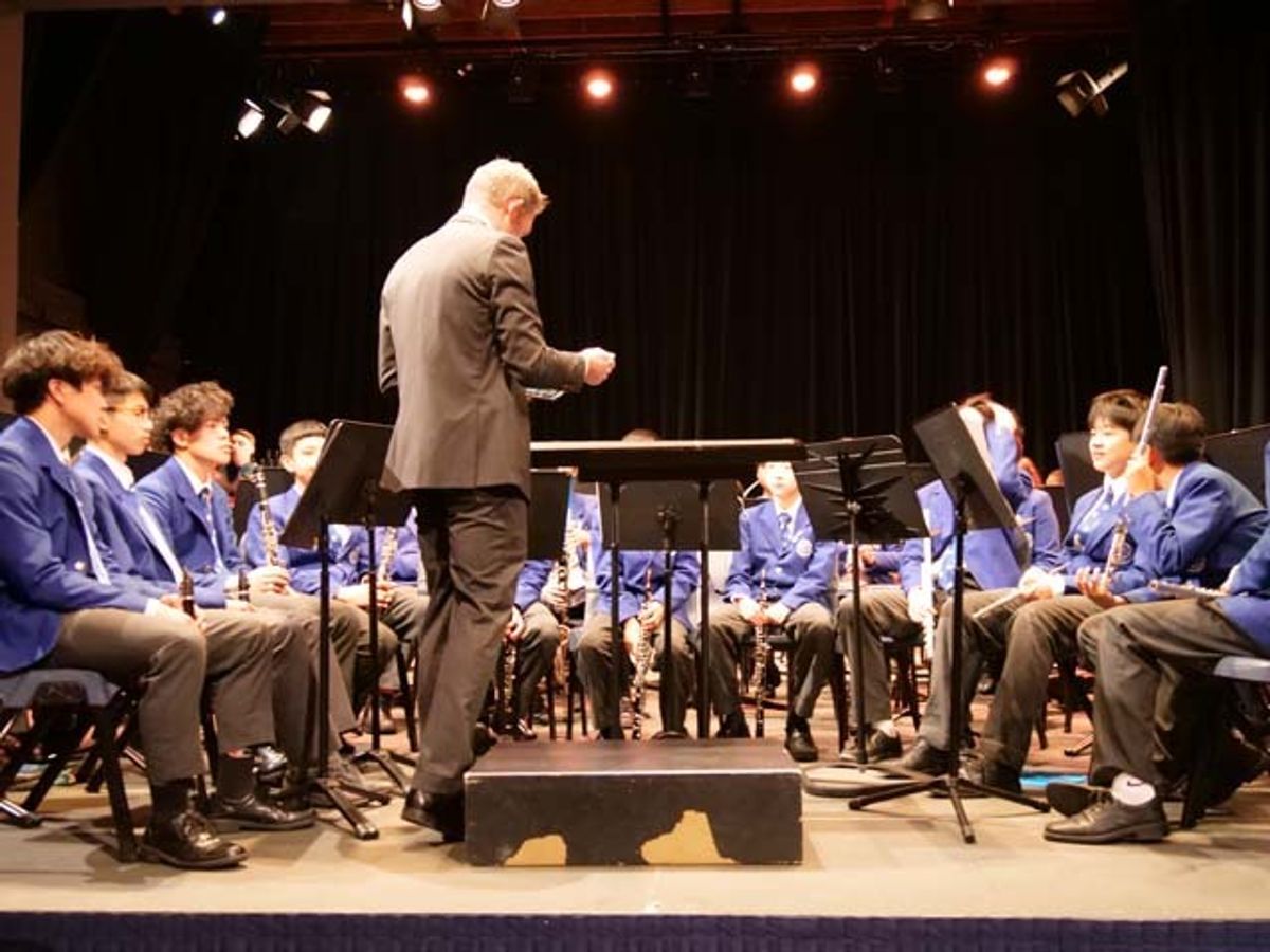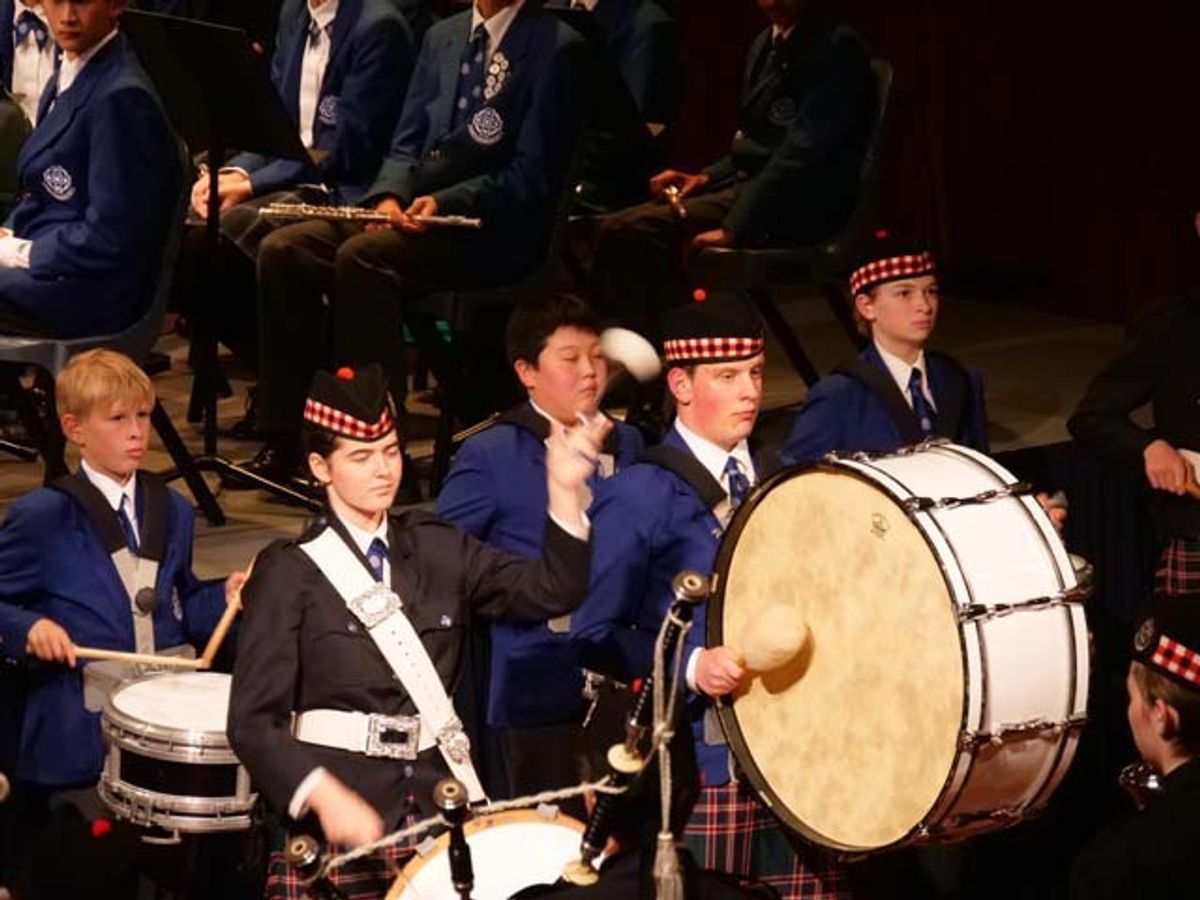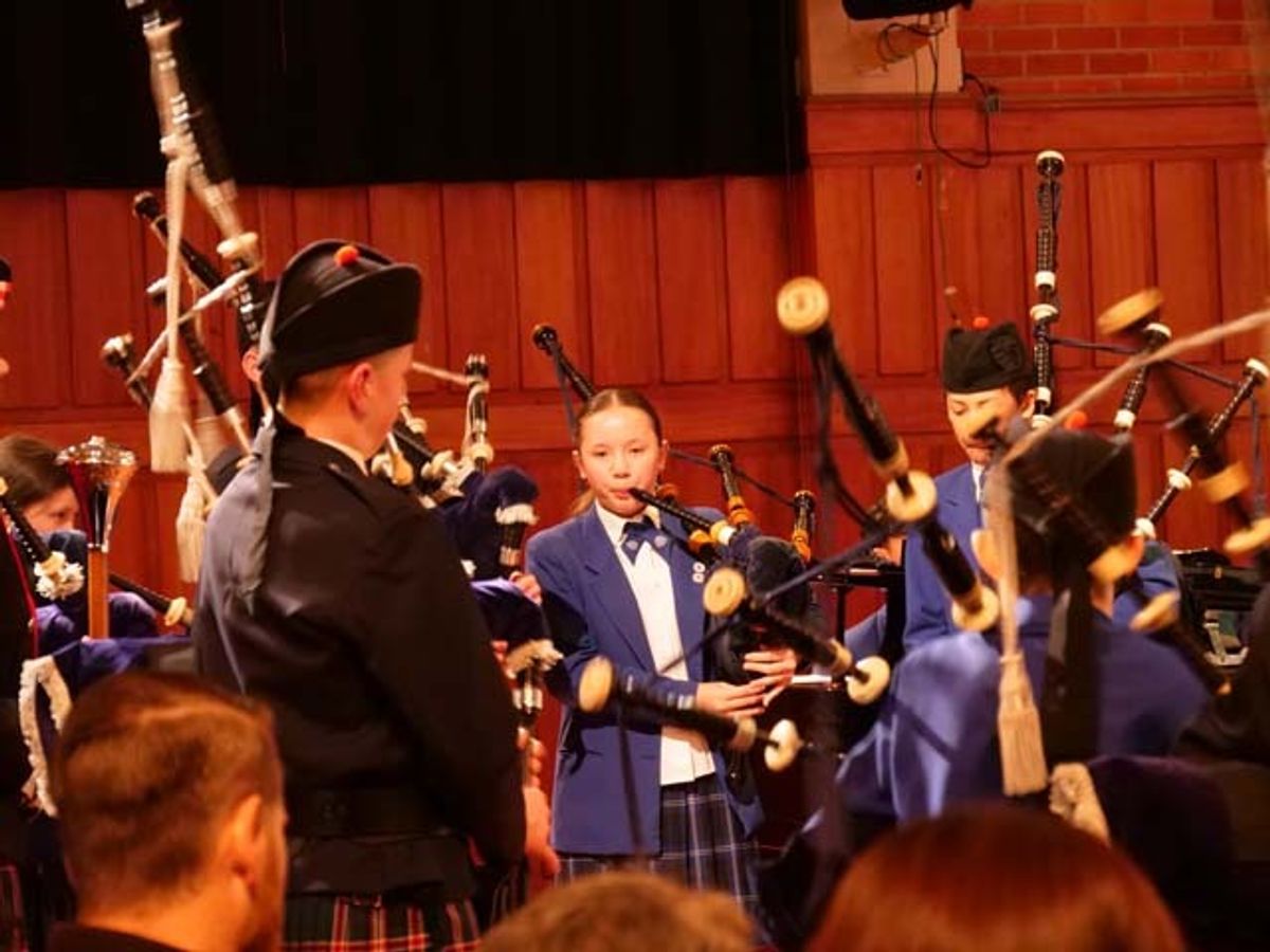 The atmosphere swelled with anticipation as the first sound of the 2nd Pipe Band filled the hall, marking the beginning of the show. Energising the crowd, the Symphonic Band conducted by Mr Matt Baker followed, enthralling guests with renditions of the ‘Liberty Bell’ march and ‘The Mandalorian’ theme song. Witnessing the exponential growth of this band in recent years, it was remarkable to see a full-size group showcasing their talents with a diverse array of instruments.