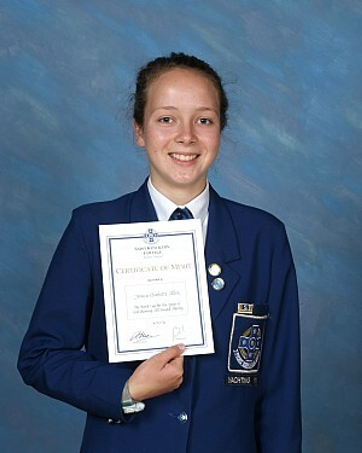 This Cup is awarded to a Year 10 girl who shows all round ability. Jessica has shown her leadership qualities as a Middle School Leader. She has been active this year in the Yachting Premier Team and has participated in the Duke of Edinburgh Bronze Award. Jessica has also been a member of the Musettes and Kentoris Choirs and had a lead part in the Middle School Production. Jessica has consistently maintained very high standards in her academic work being awarded Academic Honours, the Latin Prize and the St Andrew’s Divinity Prize and has contributed confidently to the College in 2012.