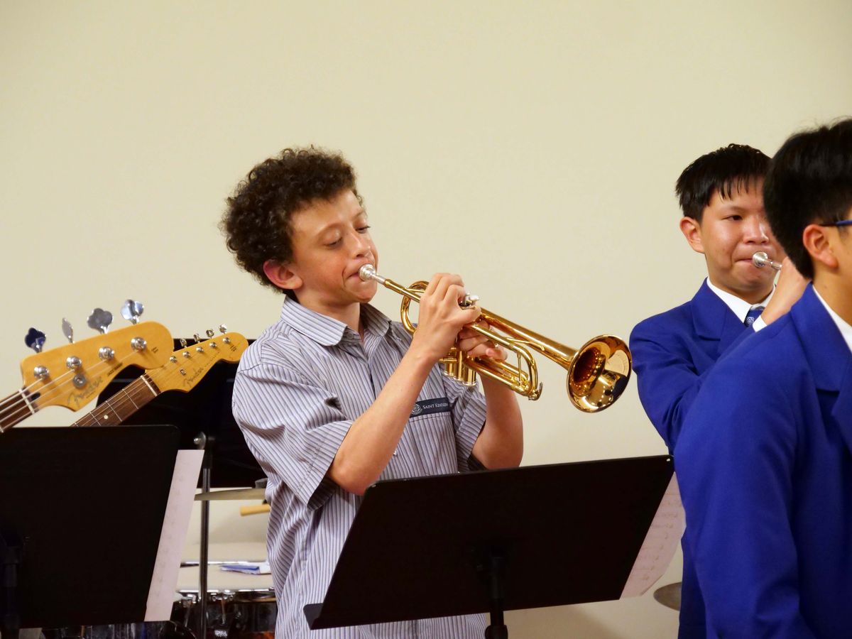 The final performance of the first half was by the Junior Jazz Combo, made up of some of our best brass players in the middle school. Directed by Mr Albert Lee, they played two pieces before the five-minute interval.