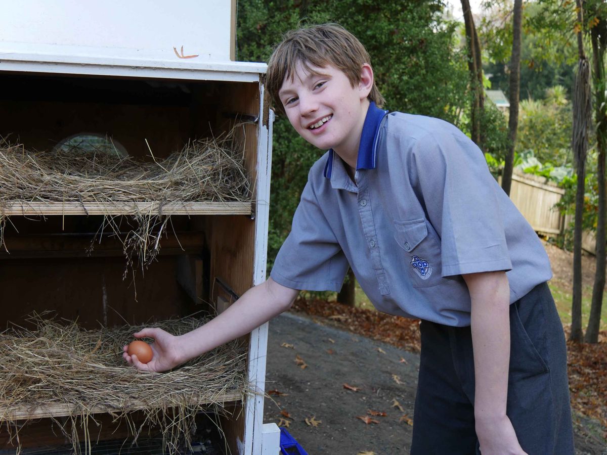 Staff member, Mr James Burcham (Technology) has taken a vested interest in the ‘chooks’ and with the help of the chicken monitors, Year 7 boys, Jonathan McCabe and Harrison Parr, our feathered friends are well looked after and regularly produce eggs as fresh as can be!