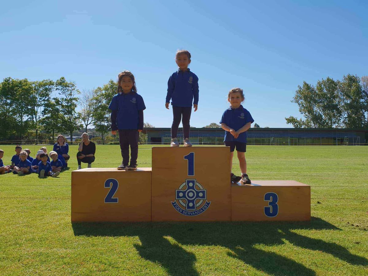 Beginning with the cross country, an event that had been postponed due to inclement weather late last term, the 3 and 4-year-old boys and girls raced with enthusiasm and great determination. It was great to see them share in the excitement when the top three children from each race stood on the dais like ‘real’ athletes.