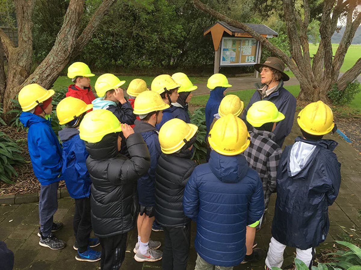 The boys moved on to Ambury Regional Park where they learnt more about volcanos in the centre classroom before donning hard hats and heading out to the lava field. A ladder protruding out of a small fissure in the ground beckoned. With torches at the ready, the boys descended one by one to discover a large cave below completing their ‘Up a Mountain, Down a Cave’ volcanic learning experience.