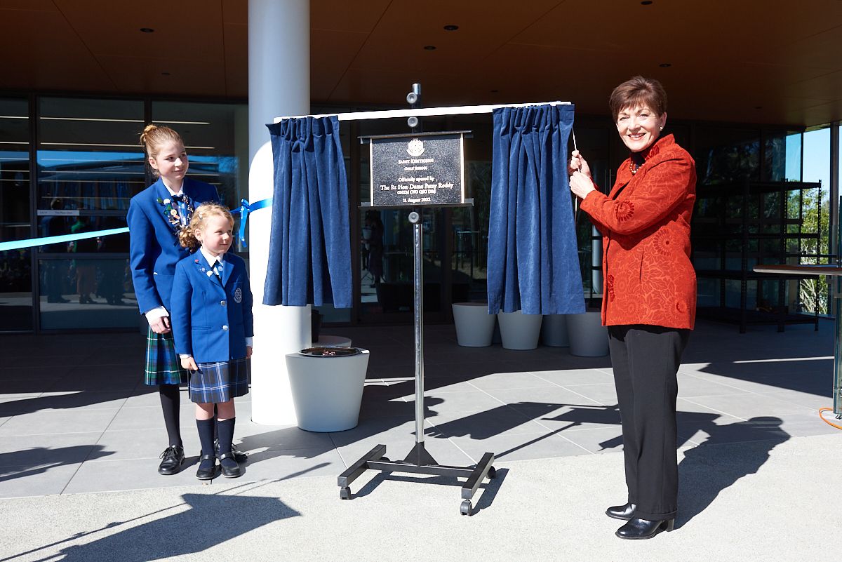 Saint Kentigern Girls’ School celebrated the official opening of its brand-new premises on Shore Road today, marking a major milestone in the 12-year history of the Girls’ School. The school was officially opened by the Right Honourable Dame Patsy Reddy, the 21st Governor-General of New Zealand in a special ceremony that was well attended by invited guests which included past and present Saint Kentigern Trust Board members and senior leaders, parents and guardians, and the Foundation staff and girls of the school. The Saint Kentigern Pipes and Drums welcomed guests as they arrived. The special event was livestreamed to share the occasion with the local and wider community.