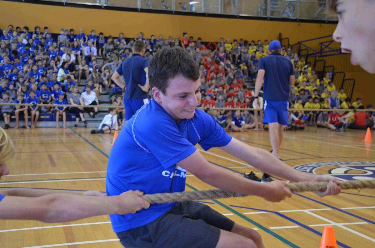 Muscles were at straining point this morning as the boys lined up in the Jubilee Sports Centre to see which team could heave the hardest for House victory!