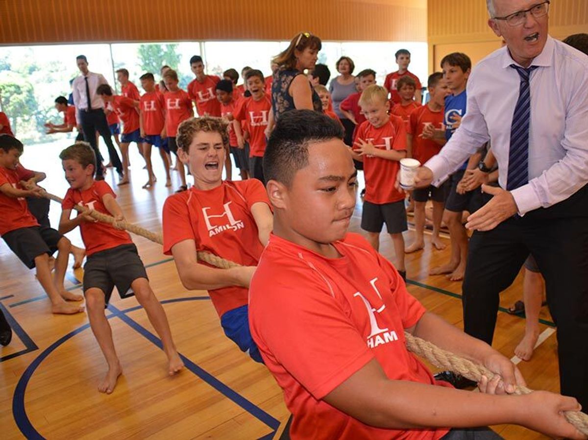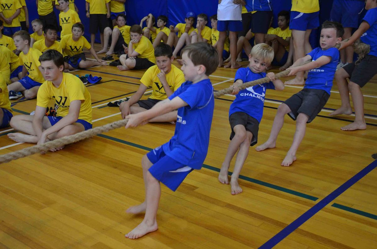 Working collaboratively is the key to success in many endeavours, and as our boys in Years 3-8 discovered this morning, a tug of war is no different! Aside from the raw muscle power needed to grip and pull, a little team planning was also required. The cooperation or ‘rhythm’ of the team members played an important part in their victory, maybe even more than their sheer physical strength – they needed to pull together! Supporters also took on a role, coaching from the sidelines and calling out ‘1, 2, 3, Heave’ to bring the teamwork into play. Those that got the rhythm right were far more likely to out-pull the opposition!