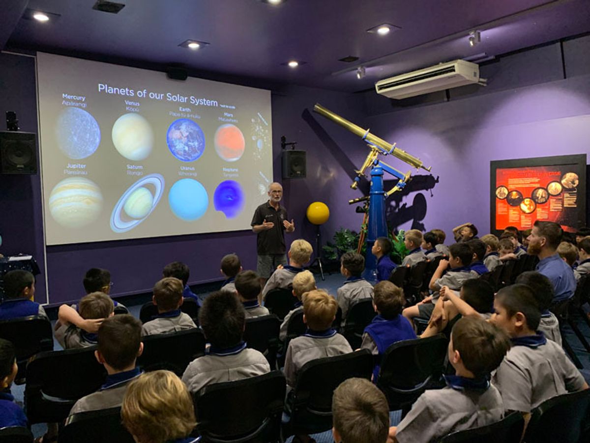 To back up their enquiry, the boys paid a visit to the Star Dome at Auckland Observatory in Cornwall Park, firstly spending time with Star Dome’s educator in the Observatory classroom. It soon became apparent that that this was an area of learning that had engaged the boys! The educator was most impressed as they reeled off the names of the planets in order of their distance from the sun, and articulated the difference between the ‘rocky midgets’ (Mercury, Venus, Earth and Mars), ‘gassy giants (Jupiter, Saturn and Uranus) and the ‘dwarf planet,’ Pluto.