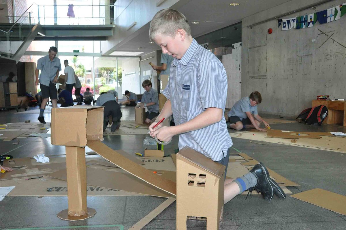 Building a Cardboard City is one of the enduring activities that our Year 8 students enjoy during Home Centre Challenge Week. Encouraged to push the boundaries, the students were briefed to create original structures inspired by ‘Caine’s Arcade’ – A nine-year-old American who spent his summer vacation building an elaborate DIY cardboard game arcade inside his dad’s used auto parts store.