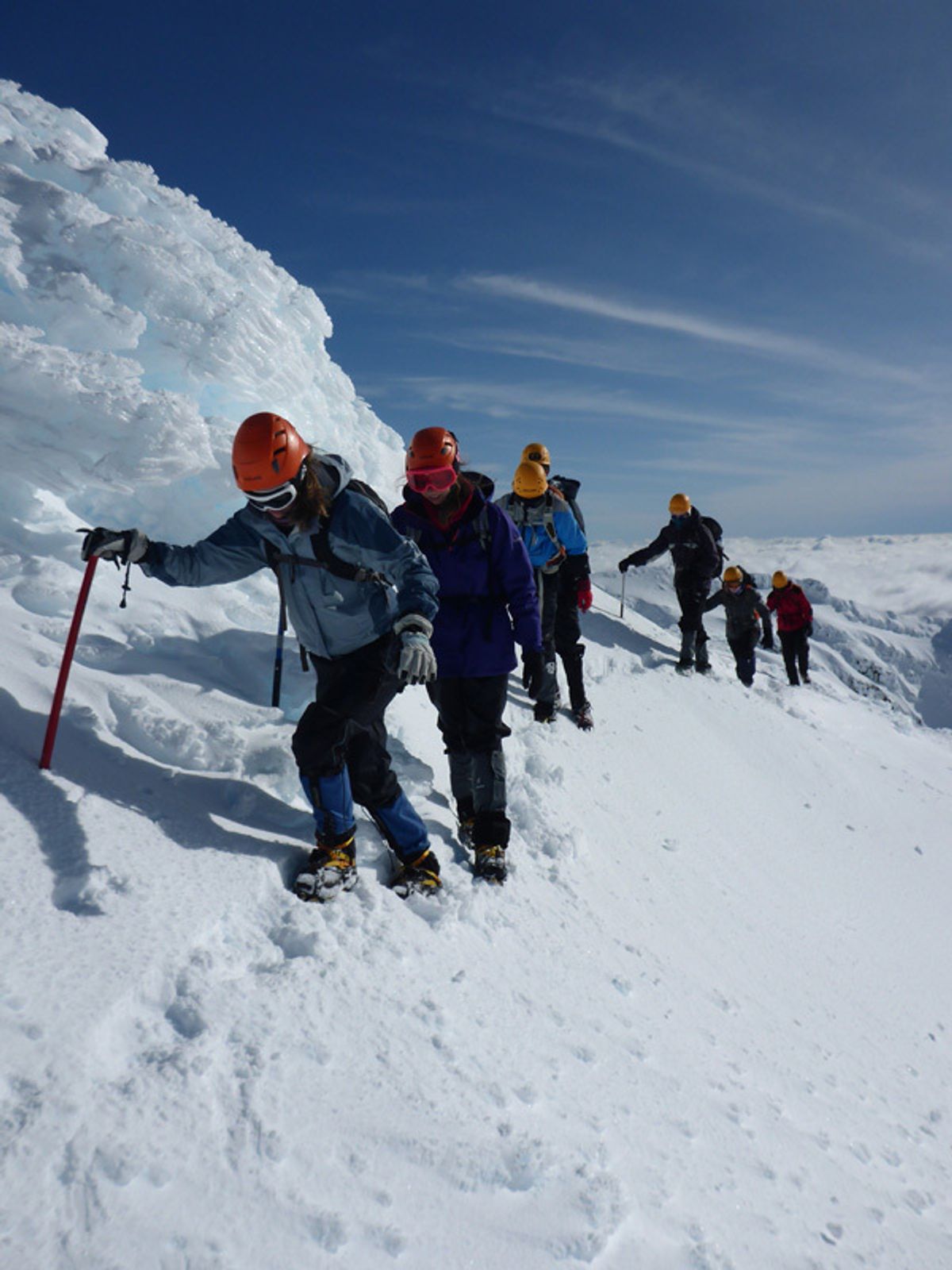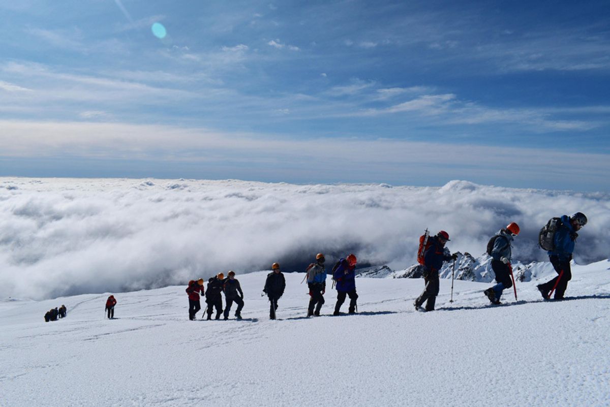 On the first day students got to grips with essential mountaineering skills such as using ice axes and crampons to walk on steep and icy terrain, building snow shelters and how to ‘self-arrest’ a slip – digging in quickly with an ice-axe to prevent sliding down the mountain in a fall.