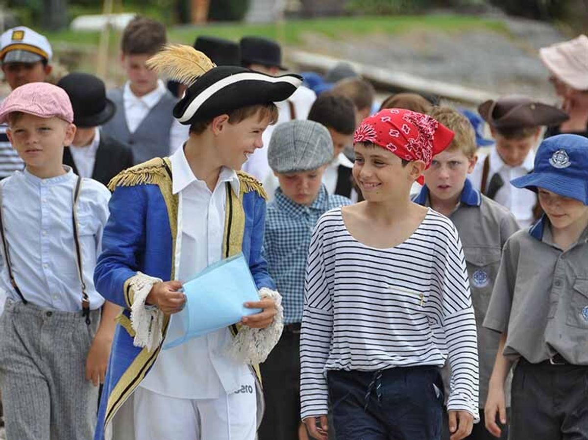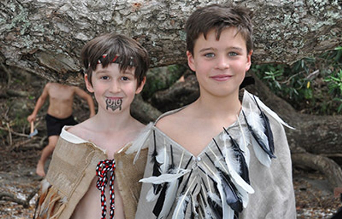There was much excitement from the boys as they made their way down the long, winding path to the waterfront, half of them dressed in full Victorian style men’s clothing and the others wearing Maori cloaks. In the lead up to the trip, the Year 5 classes had written a short role play to perform under the cover of the big red pohutukawas that line the beach.