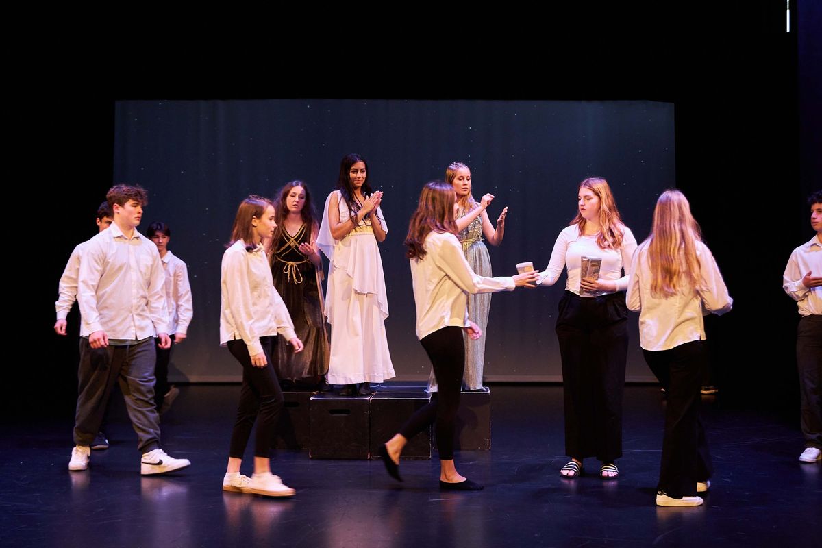 The Year 12 classes took the stage the following week with two distinct plays. Musical Differences by Robin French centred around a young guitar player’s journey of self-discovery, delving into familiar themes of individuality and resilience during adolescence. The play’s poignant ending left spectators in contemplation, appreciating the complexities of growing up. Meanwhile, Ophelia Thinks Harder by Jean Betts challenged traditional theatre narratives, particularly in works like Shakespeare’s Hamlet, in which the female characters are supplementary. This empowering reimagining of Ophelia’s story sheds light on her experiences, giving a new perspective to one of Shakespeare’s classic tragedies.