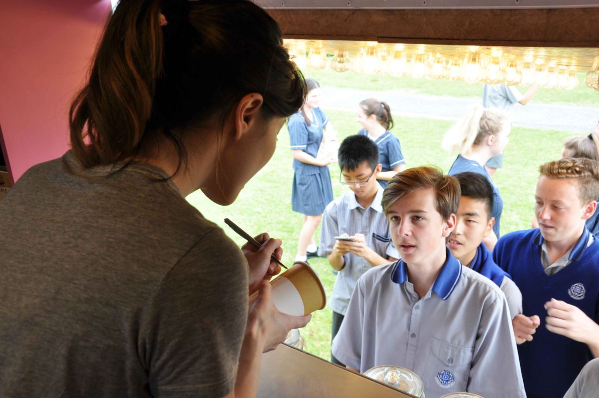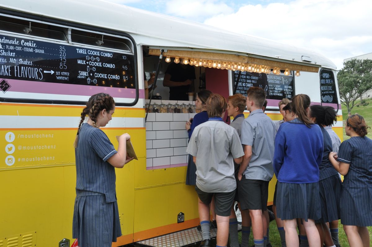 Year 10 Food Technology students treated themselves to some milk and cookies on campus today, but it wasn’t all about the decadent food, there was a purposeful objective. The Moustache Mobile Cookie and Milk Bar visited the College, giving students the opportunity to experience one of Auckland’s most popular food trucks; a business developed on the premise of keeping the choice simple but ensuring only the best ingredients are used.