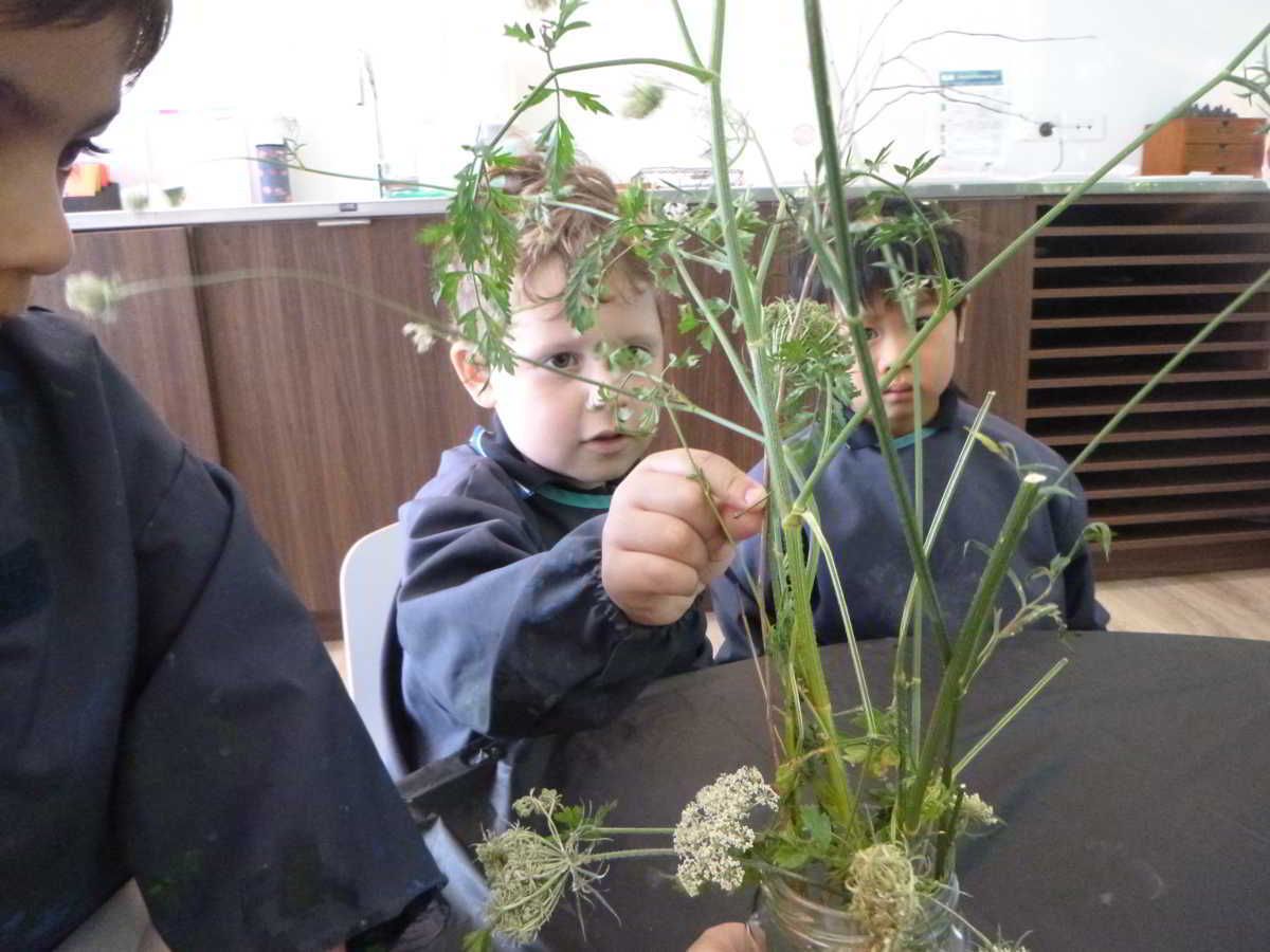 The ritual of setting up beautiful provocations to sharpen the children’s sensory engagement with resources has led to fantastic pieces of art. From delicate kawakawa leaf printing to group canvas paintings, the children are developing knowledge of how to use tools and mediums in purposeful ways. This term, an overarching intent has been to incorporate natural and recycled materials into these mini art projects. The children have been given opportunities to express their budding artistic talents through printing on clay; these creations highlight attention to detail along with a developing appreciation for the intricacies in the natural world.