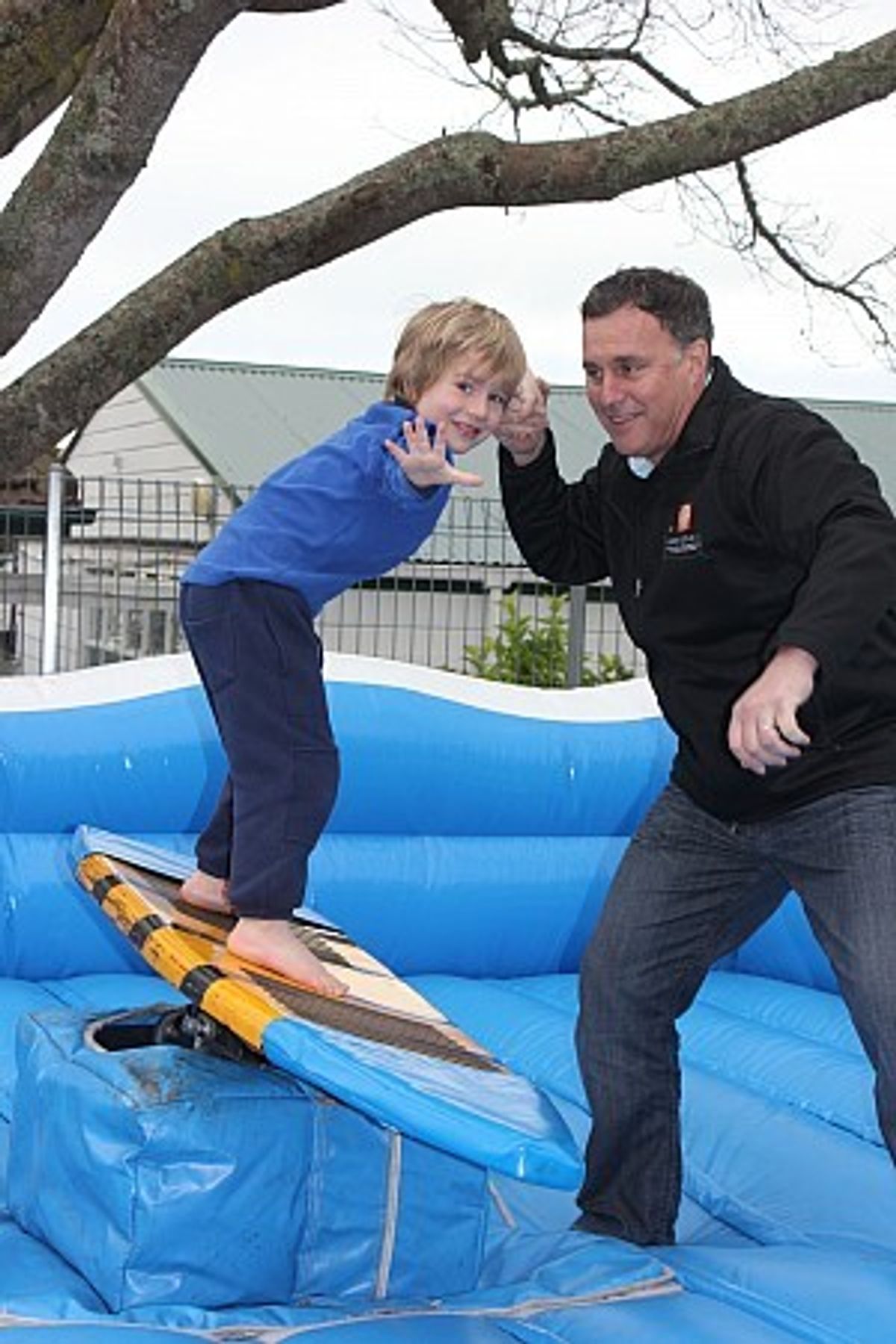 We had a great turnout of fathers and grandfathers at Preschool on Friday for our annual Father’s Day morning. The mechanical surfboard was the highlight of the morning. Every child had a turn on the surfboard with their Dad, as it began to move slowly and then a bit faster! With a bit of peer pressure each Dad plucked up the courage to have asurf too! Much hilarity was had at their expense – thank goodness for the inflatable soft landing for some!