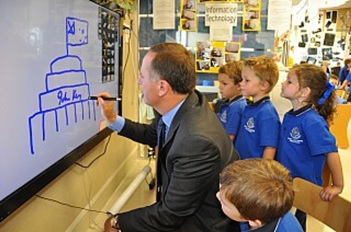 Mr Key went into the Preschool and had lots of fun sitting on the little seats, talking to the children and drawing a picture of his office in the Beehive on our interactive screen!