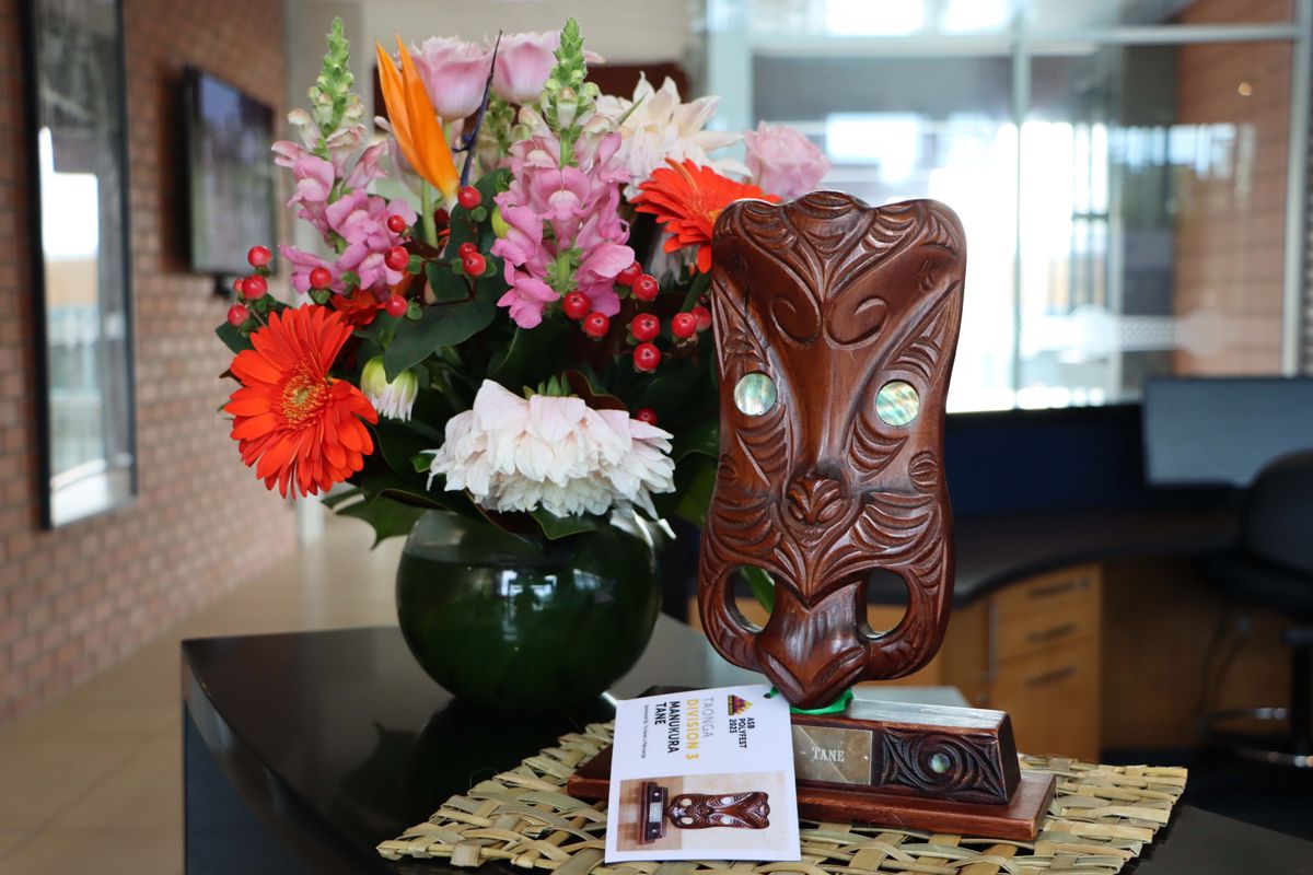 1st Place taonga for Manukura Tāne - Male Leader Category Rawiri Martin.