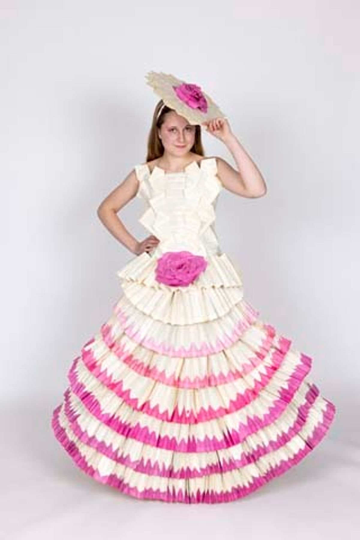 Senior School Supreme Winner went to Morgan Alley with Ready to Wear. Her entirely sustainable garment contained just under 1000 individually dyed and folded book pages. The final product – reminiscent of mid-19th century dresses – impressed the judges and elevated her above the competition.