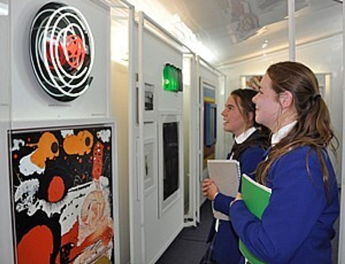 It may have looked just like a big silver truck when it arrived, but it was actually an art gallery in disguise! The College Art Department was fortunate to secure a visit from one of the country’s most unusual and unconventional art galleries – the ‘Silver Truck,’ part of the Real Art Road Show currently touring New Zealand. This is a travelling exhibition of original art work that includes pieces from both newly emerging artists as well as the work of some of New Zealand’s leading, contemporary artists such as Shane Cotton, Don Driver, Simon Ogden, Ralph Hotere, Greer Twiss, Robin White and Toss Wollaston. The travelling show aims to give students who are interested in art the opportunity to see the real thing; to be inspired, challenged and ‘wowed’ by the true scale, texture and colour of original artworks, no matter where they live or where they study.