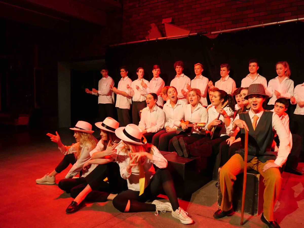 Over two nights this week, drama students in Year 12 have performed a moving production of ‘The Resistible Rise of Arturo Ui.’ Written in 1941 by German playwright, Bertold Brecht, the drama chronicles the rise of Arturo Ui, a fictional 1930s Chicago mobster, and his attempts to control the cauliflower racket in the city market by ruthlessly disposing of the opposition. The key characters and events in the play are deliberate and conscious parallels to those that surrounded Hitler’s rise to power in Germany. Brecht’s message is that Hitler’s evil flourished, and evil will always flourish unless good people are bold enough to confront that evil. Staged on a stark set in the Jack Paine Centre with minimal props and costuming, the strength of the production lay in the students’ dramatic ability.