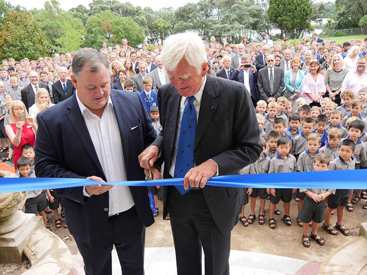 On a day that started with sheets of rain, the heavens were merciful as the entire school joined our guests for the ribbon cutting ceremony on the front steps of Roselle. Scissors in hand, Mr Lennox-King and Mr Wilson did the honours as three cheers rang out from the boys!
