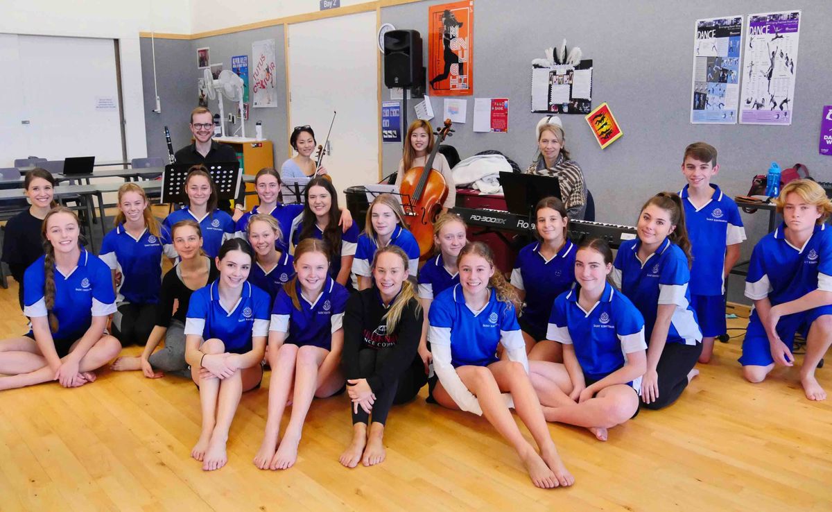 On the last day of Term 2, our Year 11 dance students were privileged to welcome Royal New Zealand Ballet (RNZB) dance education teacher, Lucy Marinkovich, along with musicians, Yuhka Nagai, Tatiana Lnchchkova, Sally Kim and Alex Eichelbaum from the Auckland Philharmonic Orchestra (APO), to their class, to work alongside them in a workshop setting.