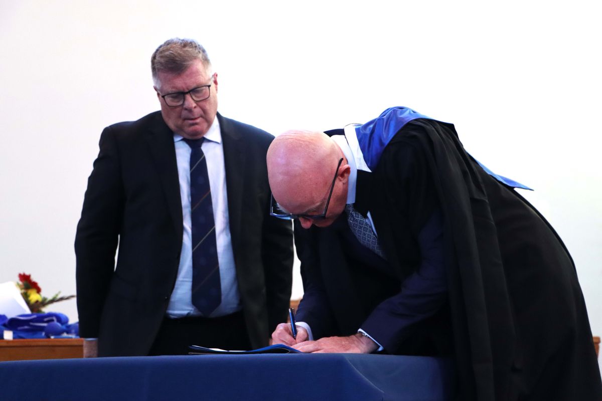 Performances by the College Premier Choir and Chapel Prefect Catalina Addis, who delivered a moving rendition of ’Amazing Grace,’ underscored Reverend Smiths message and prayer for Mr Emtage - that God would grace him for all his responsibilities at Saint Kentigern College. To make his appointment official, Mr Emtage pledged his commitment to the College. He was subsequently presented with regalia by students of different year groups for his supporting duties at upcoming sports matches. The ceremony concluded with light refreshments in the Goodfellow Centre, where guests mingled and celebrated the new era of leadership at Saint Kentigern College.