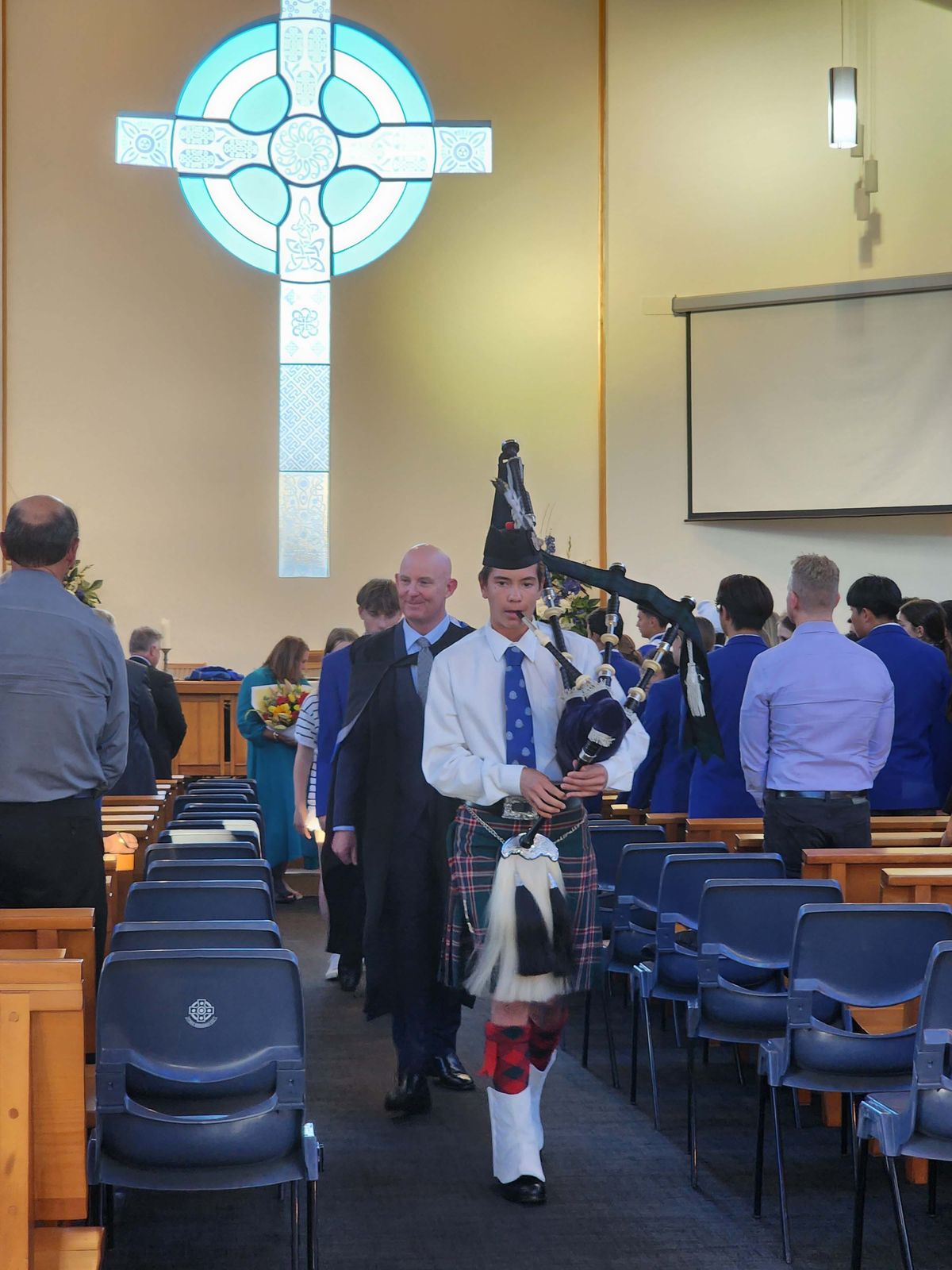 The ceremony commenced with a welcome by the Pipes and Drums outside the Chapel, followed by a Powhiri to welcome Mr Emtage and his family inside. Head Boy Harvey Whyte and Head Girl Kaia Ashmore delivered welcoming speeches, expressing their excitement to work alongside Mr Emtage and their anticipation of the positive changes he would bring to the College.