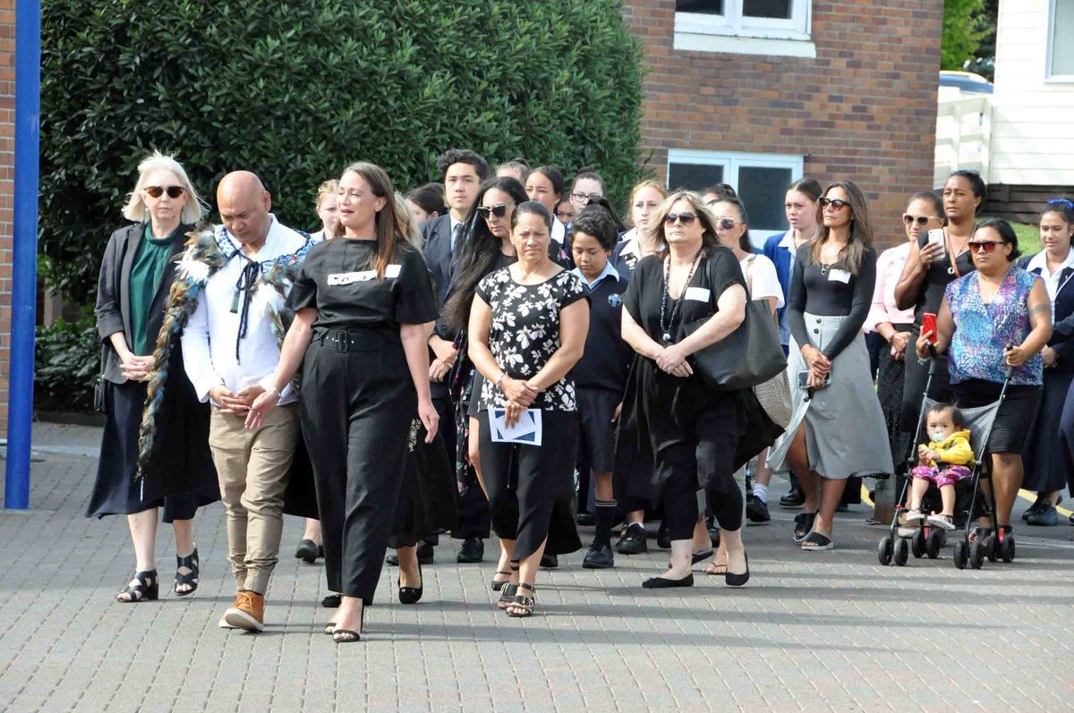 Selena Agaimalo (Year 12) sang the karanga, a formal, ceremonial call of welcome, accompanied by piper, Kate Pennycuick (Year 13), while the Cultural Group performed Te Waka, with great poise and energy, as Matua Nelson and the Saint Mary’s College students, staff and special guests were welcomed into the Quad.