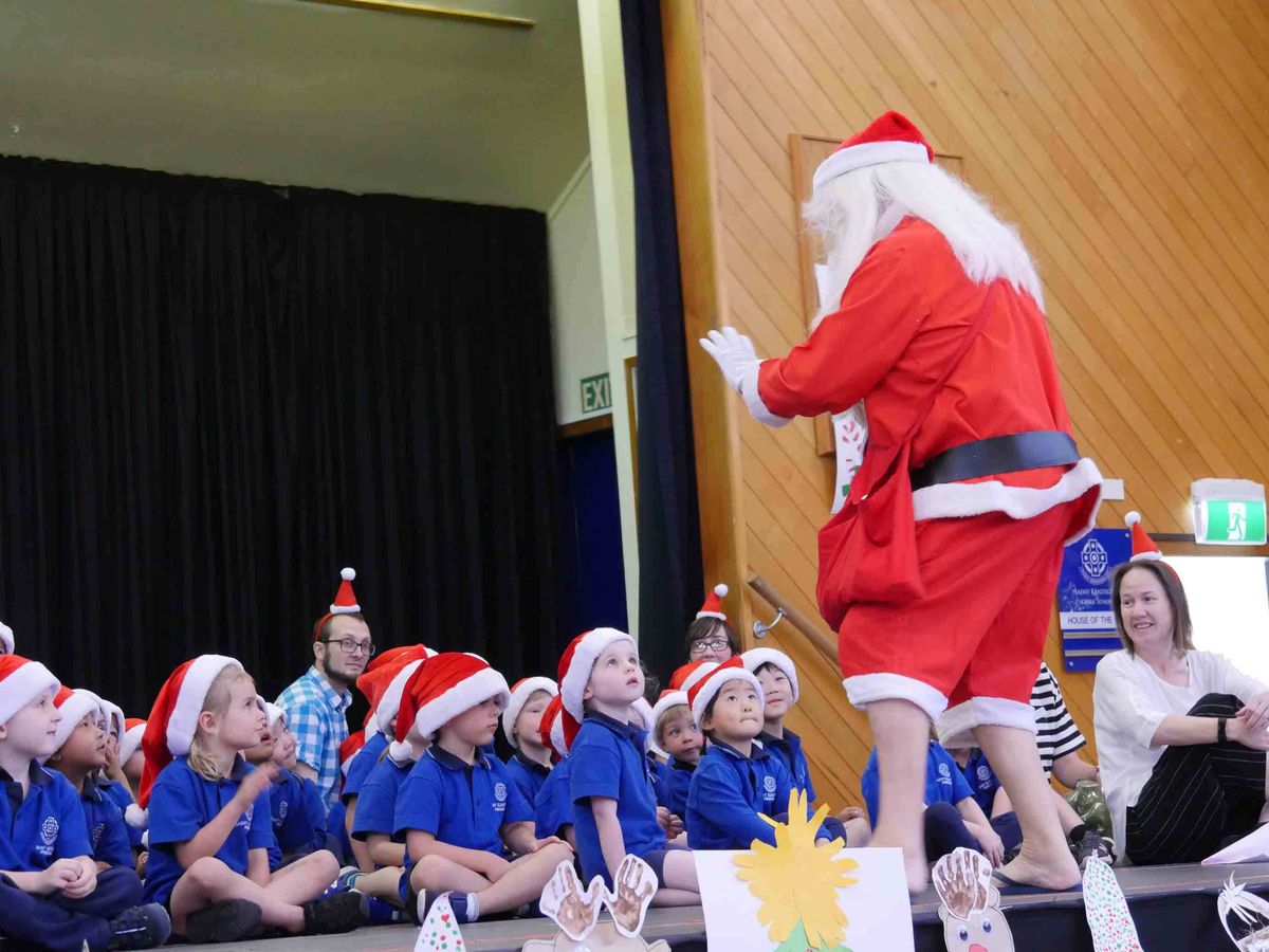 What a fabulous morning! 54 excited, bright-eyed preschoolers took to the stage at the Girls’ School, in front of an audience of almost 250 parents, grandparents, invited guests – and Santa! The annual Christmas concert was their moment to shine and shine they did! With each of the successive eleven songs, a new group of boys and girls came to the front to lead. Yes, our three and four-year olds remembered the words and actions to eleven songs, and what’s more, one was sung entirely in French!
