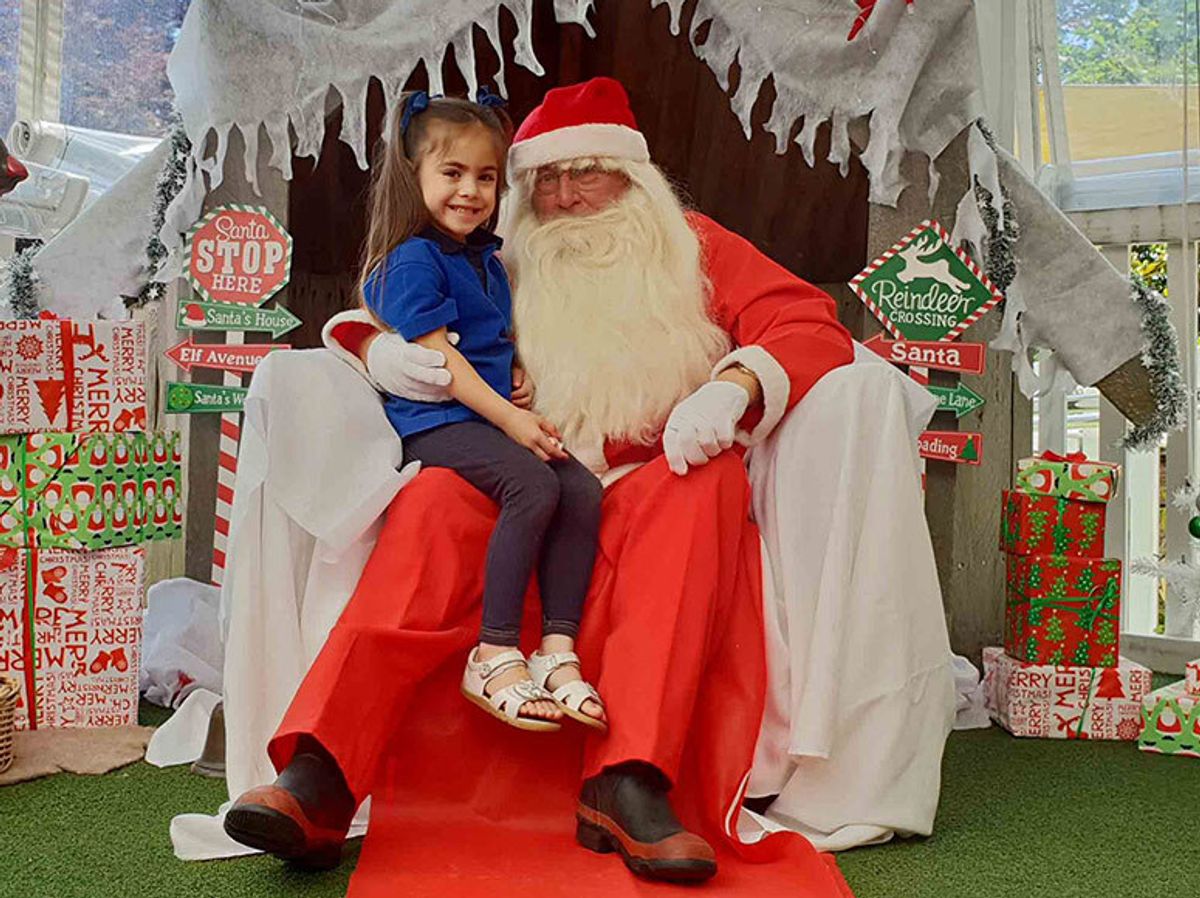 The concert concluded with Reverend Reuben Hardie’s blessing, before the children and their guests returned to Preschool for a picnic lunch. Santa made his entrance again – this time wearing his ‘formals’ – long pants and black boots! The children were delighted to visit him in his grotto to receive a gift. There were smiles all round!