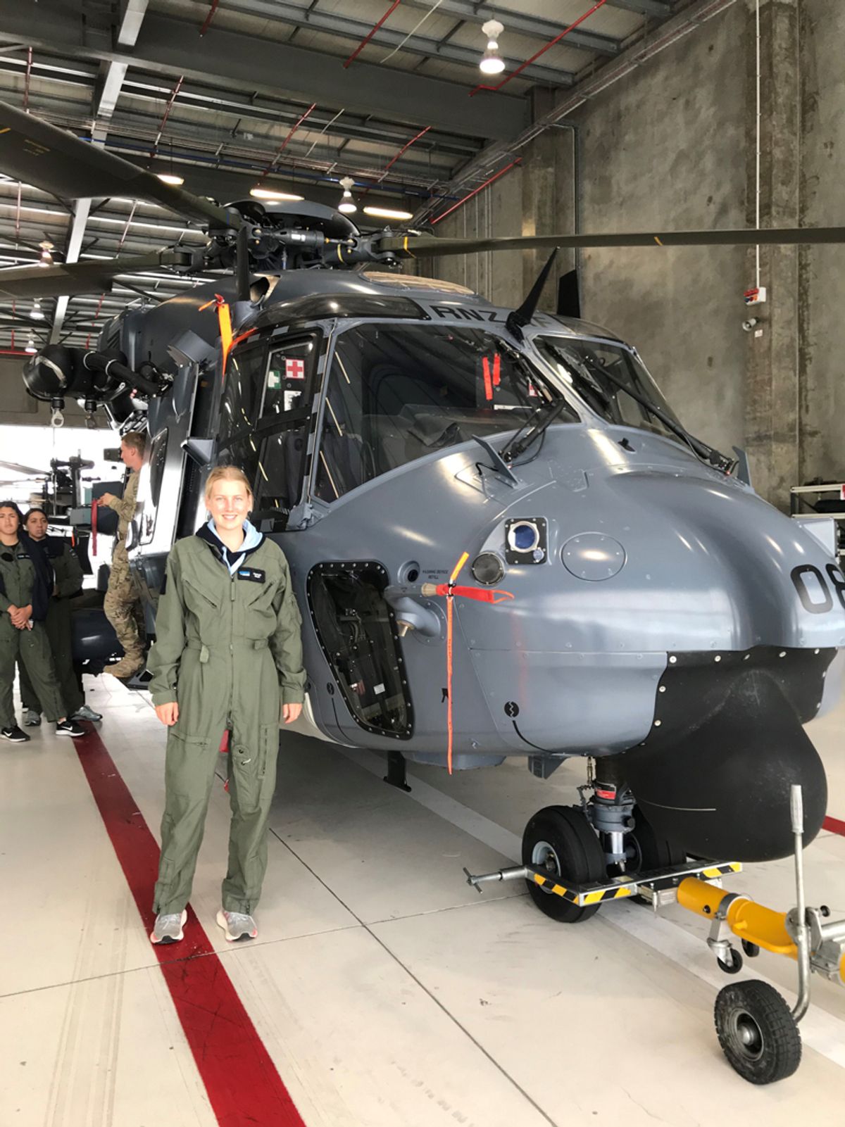 ‘Over the week, we were also lucky enough to have a military psychologist come and talk to us about resilience and leadership. Many other panels and guest speakers talked to us regarding these ideas, too, including the Chief of the RNZAF, well-known scientist, Nano-girl and corporate partners of the Air Force. As well as all this, we talked and interacted with communications and intelligence specialists, air warfare officers, helicopter loadmasters and pilots - we even flew a helicopter simulator! However, the highlight of the week would definitely have to be the flight in the NH90 helicopter!’