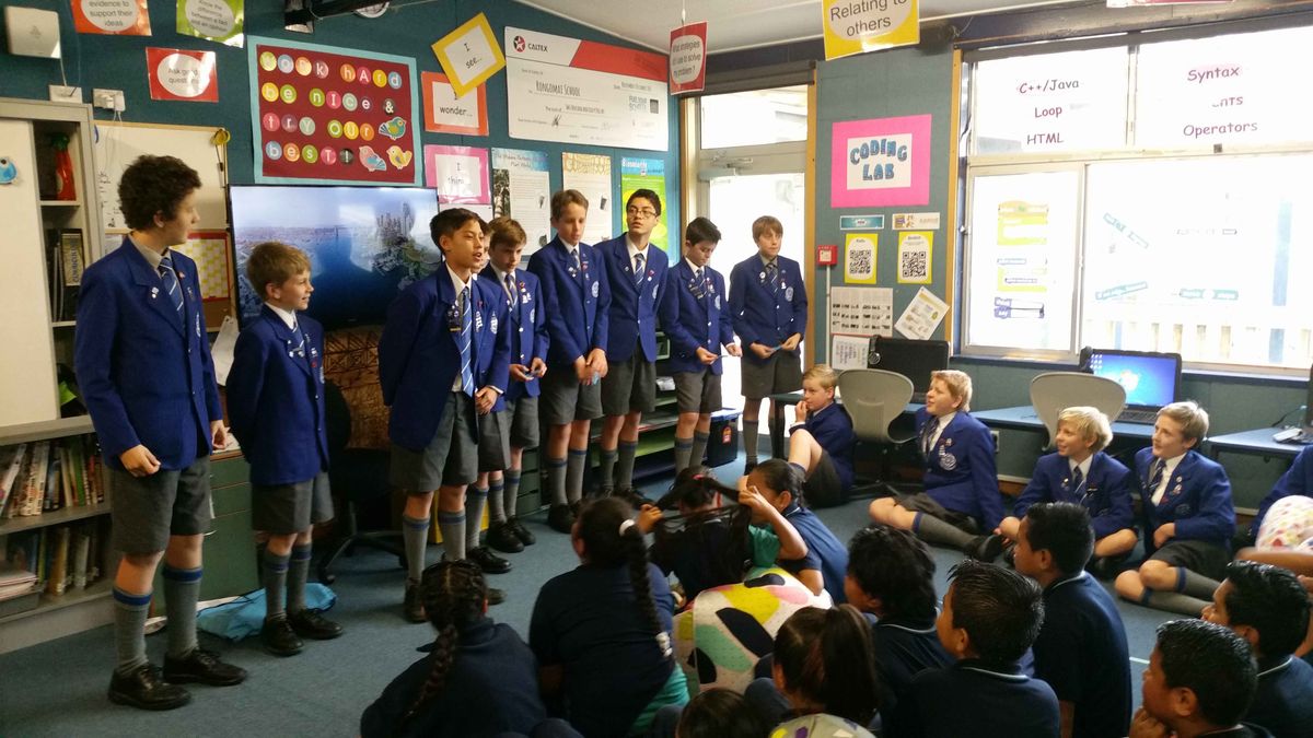As part of our service outside school this term, a group of Year 8 students from the Boys’ School visited a STEM* immersion classroom at Rongomai Primary School in Otara, to share ideas and work alongside their Year 5/6 students.