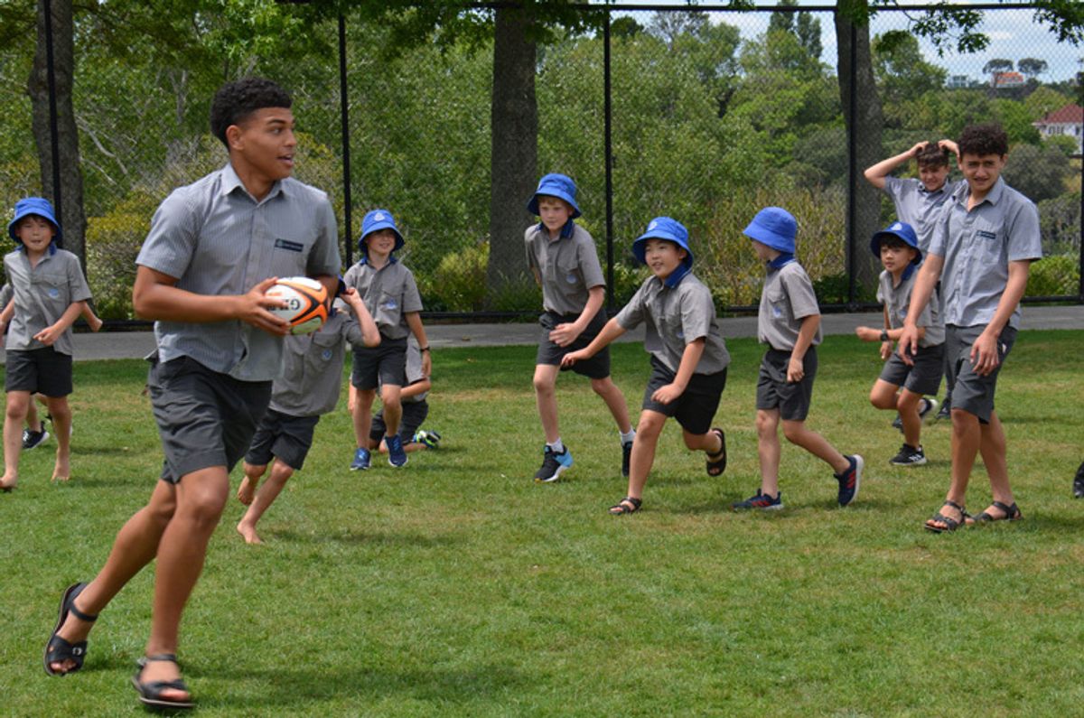 A group of Year 3 boys joined the ‘big boys’ out on the field, and like boys anywhere, as soon as a ball was introduced, the inhibitions came tumbling down! Dodging between the legs of older boys, the pint-sized rugby players were keen to share their skills, whilst the older boys facilitated play between the age groups.