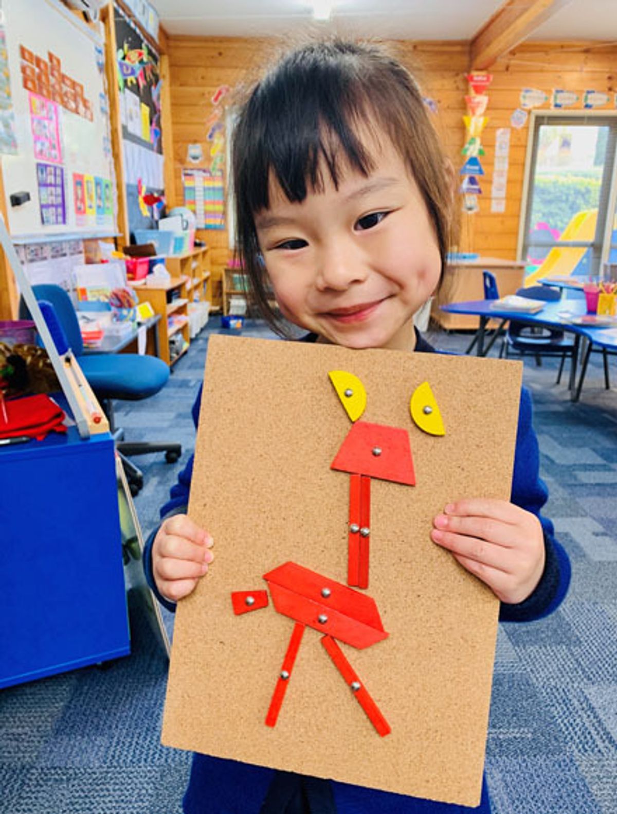 The girls also used their fine motor skills with hammer and nails, while also applying maths skills, to fashion tangram pieces into giraffe shapes. Year 8 student, Zoe Davis-Calvert, joined the class to work with them as a team to create a giraffe using only body parts. Well done girls!