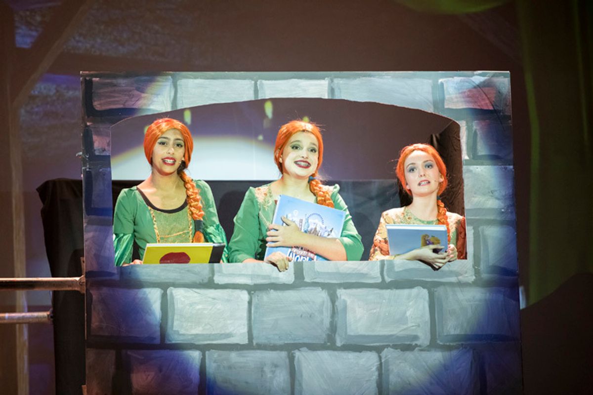 The story follows Shrek, the world’s most famous ogre - the big, green, trumpet-eared hero of the show - who is cast adrift by his parents at just 7 years old to ‘take his place in the world.’ In his first musical number, ‘Big Bright Beautiful World,’ we discover that the world is bright for everyone… but Shrek. Young Shrek is played briefly by Alice Beauchamp until Fionn steps in as the adult Shrek. Fionn’s delivery of a lovable outcast was spot on! Transformed to a bald, green ogre, by a carefully applied ‘green prosthetic’, he went on to prove he has a wide vocal range and great confidence on the stage.