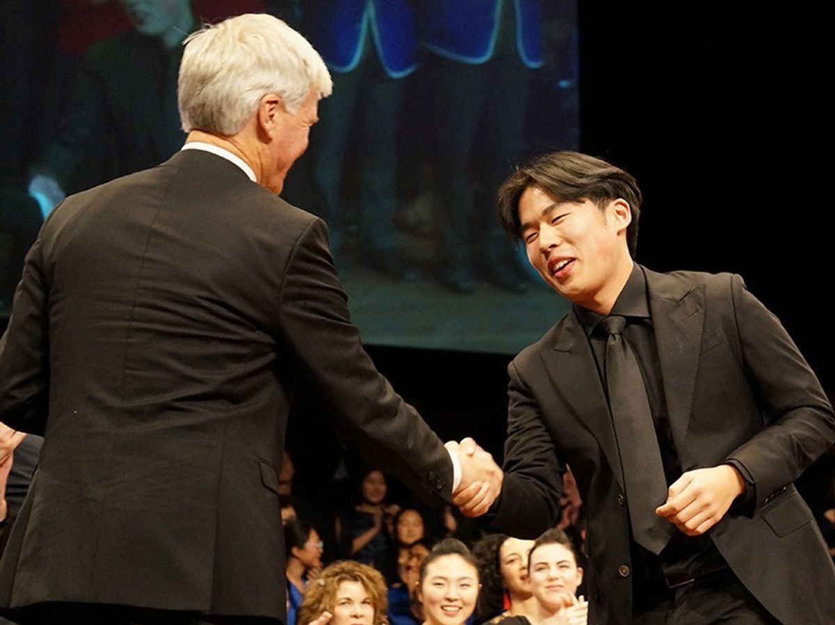 Year 13 students, Jacob Borland-Lye and Harrison Griffiths, known for their excellent performances of Raoul and Phantom in the Senior College Musical earlier in the year, teamed up again to stand out as soloists in a traditional Venezuelan piece, ‘Mata Del Anima Sola’. Year 11 student, Catherine Chang, also featured as an pianist at the Big Sing for the first time, performing ‘Neither The Moon By Nigh’t – a piece which was commissioned for the Saint Kentigern Choirs this year and has been performed jointly by Kentoris and the choirs from the Boys’ School and Girls’ School. The composer Thomas LaVoy was able to watch the competition on livestream from Marquette and commented, ‘One of the great joys of my career as a composer, to watch these wonderful singers bring my music to life. Congratulations to Kentoris, and all the other choirs and performers. Beautiful work!’