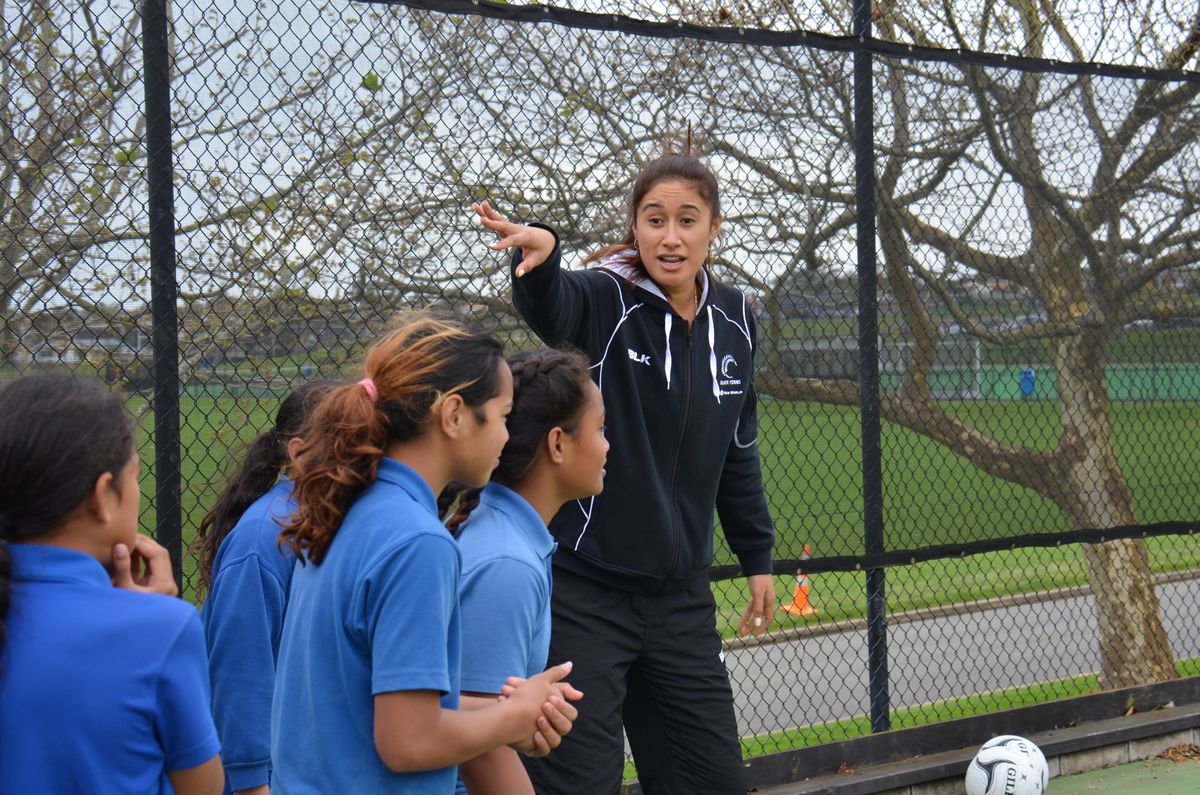 Leana De Bruin showed how to evade a defender, Grace Rasmussen demonstrated attacking skills, Maria Tutaia worked on shooting while Catherine Tuivaiti encouraged the use of different passes. Fellow Silver Fern, Kayla Cullen was unable to attend and so Georgia Ropati, the captain of our Premier team, stepped in and confidently worked with groups on straight and square movement on court. Other team members were also on hand to help out with the training exercises.