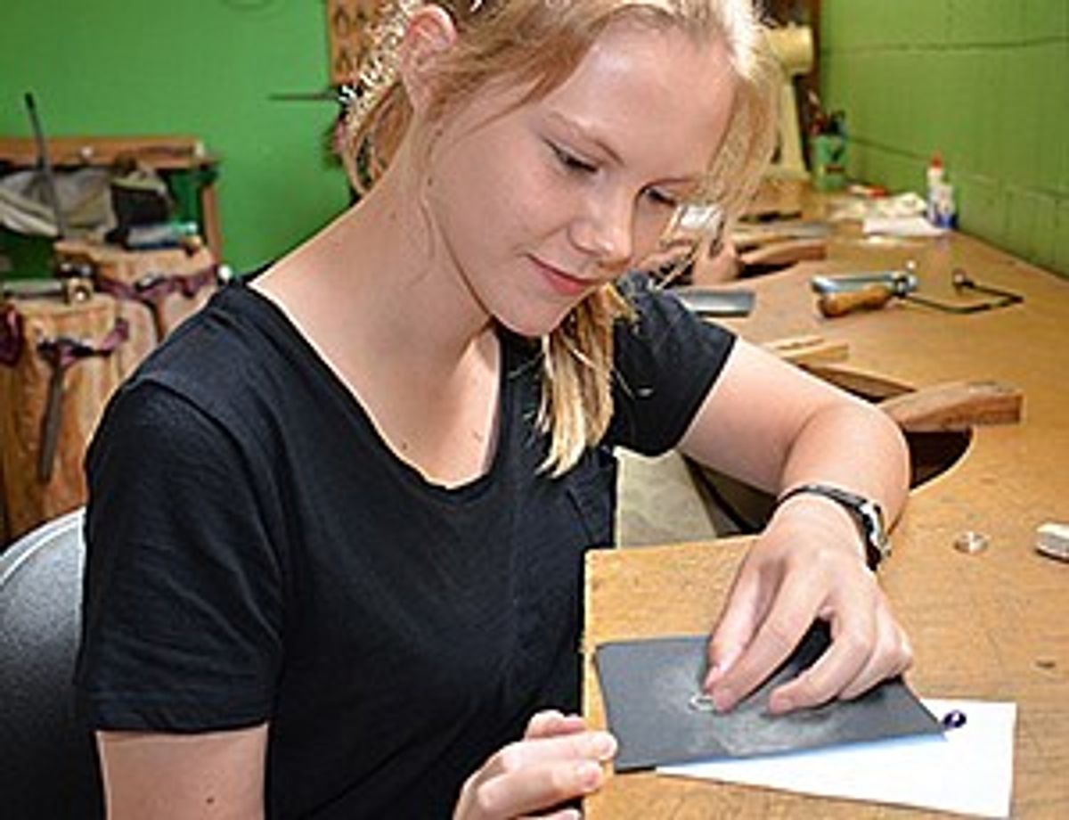 Over two days, students ran through a complex process that relied on their patience, precision and ability to accurately mark, measure and solder. After the work completed last year with Cheryl, and in class during their course work, the students had already developed a proficient grasp of the basic procedures and the language associated with craft. Mia continued the work, showing them how to extend these techniques, adding burnishing, oxidizing, machine finishes and stone setting to their metal fabrication repertoire.