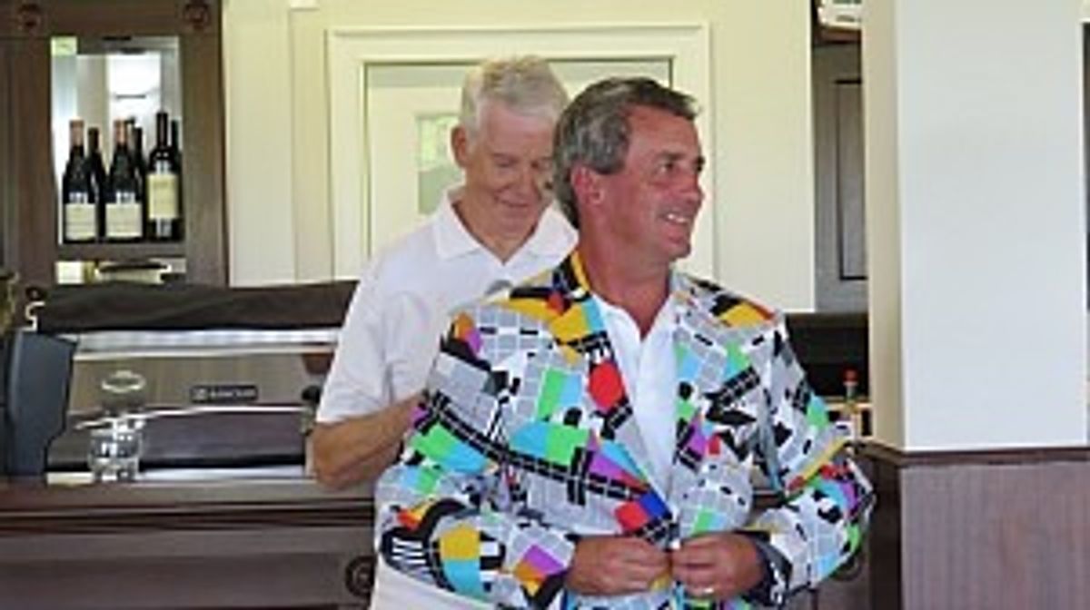 The prize for the ‘blooper’ shot of the day was not exactly one to be coveted! Having failed to achieve the lofty heights of a Master's Green Jacket, Principal Peter Cassie found himself the recipient of a gaudy, multi-coloured blazer for a less than admirable shot – it didn’t make it past the ladies’ tee! For those old enough to remember, the jacket bore a remarkable resemblance to an old television 'test pattern!'