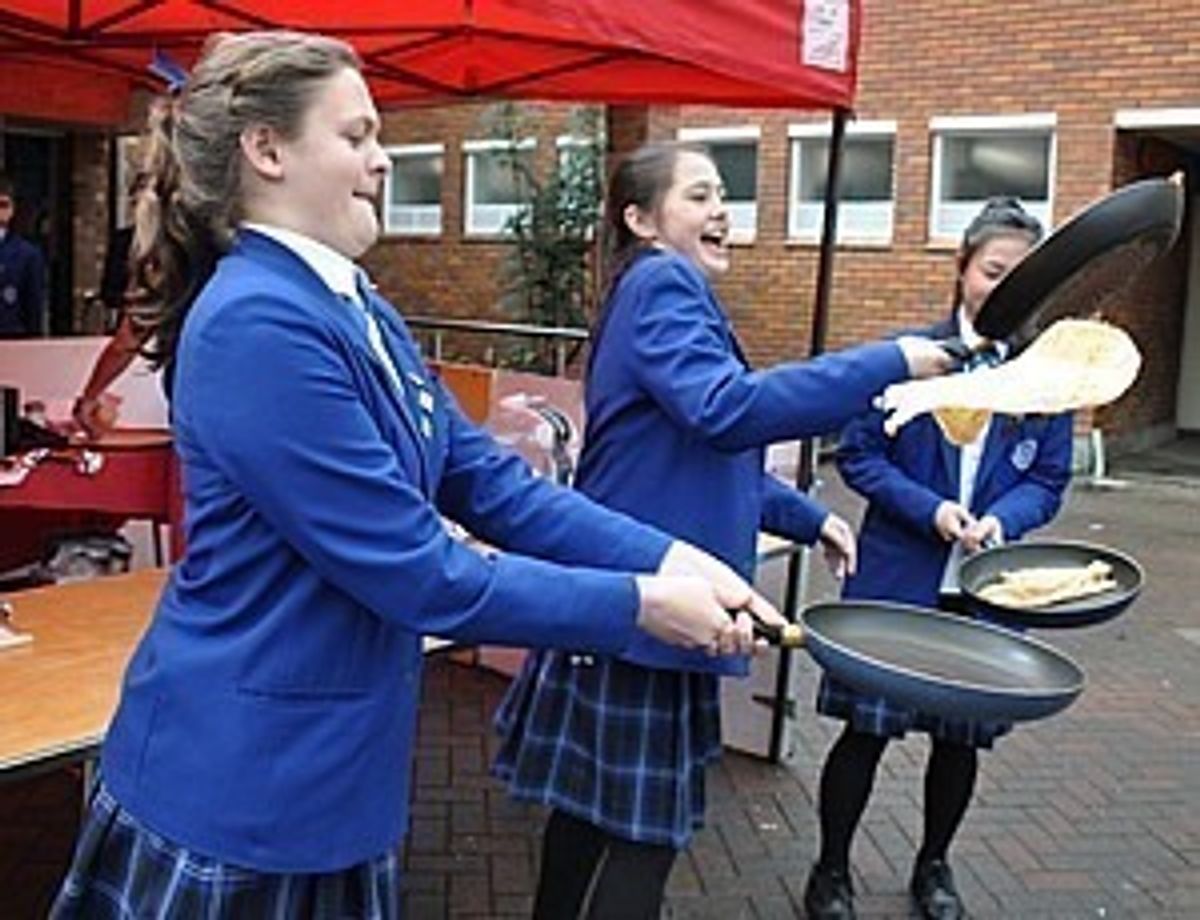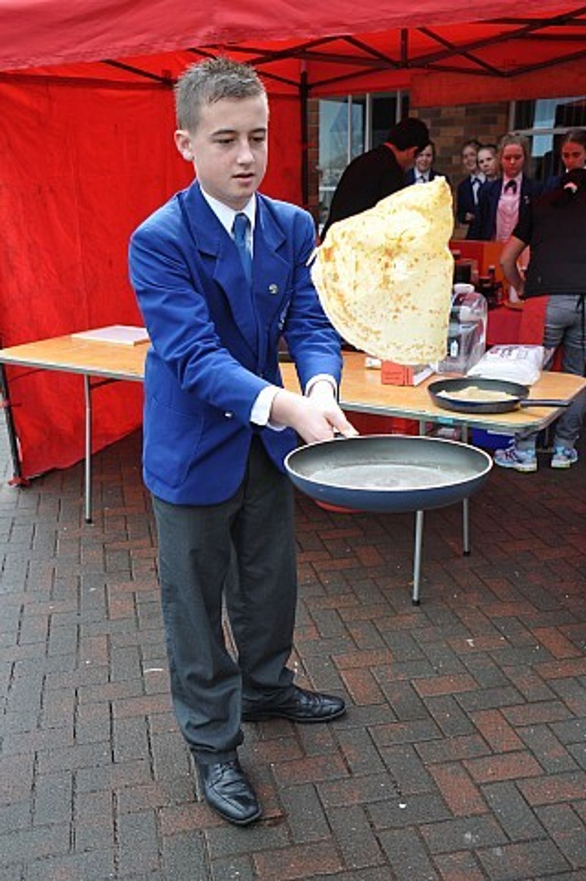 Empanadas were on offer the following day from the Spanish team with steady sales but it was definitely the French offering that drew the biggest crowd! Students in Year 10 were the first to sample the fare but not until they had completed some tasks! Before they could eat a crepe, they had to first learn to flip one and then complete an obstacle course as a French waiter, making sure their glasses stayed on the tray. Yes, a few of those crepes hit the floor!