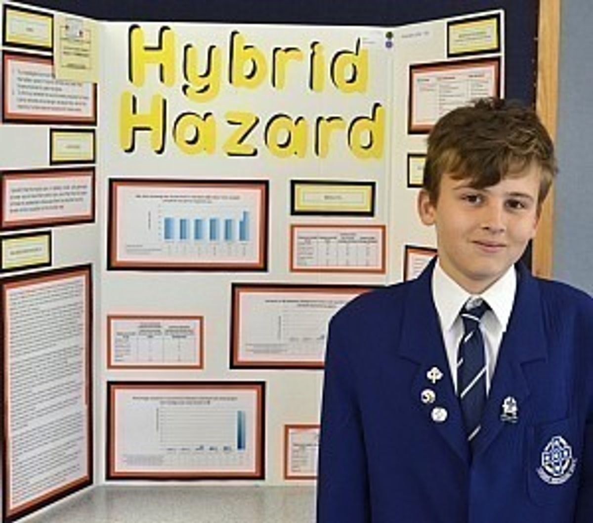Alex Collier’s project, ‘Hybrid Hazard,’ investigated the noise levels of Hybrid cars and their safety aspects. Selected from all projects in the Years 7-10 category, he was awarded the 'Transport Auckland Council Scientist for a Day' special award. This is the second year in a row that this has been awarded to a Saint Kentigern student.