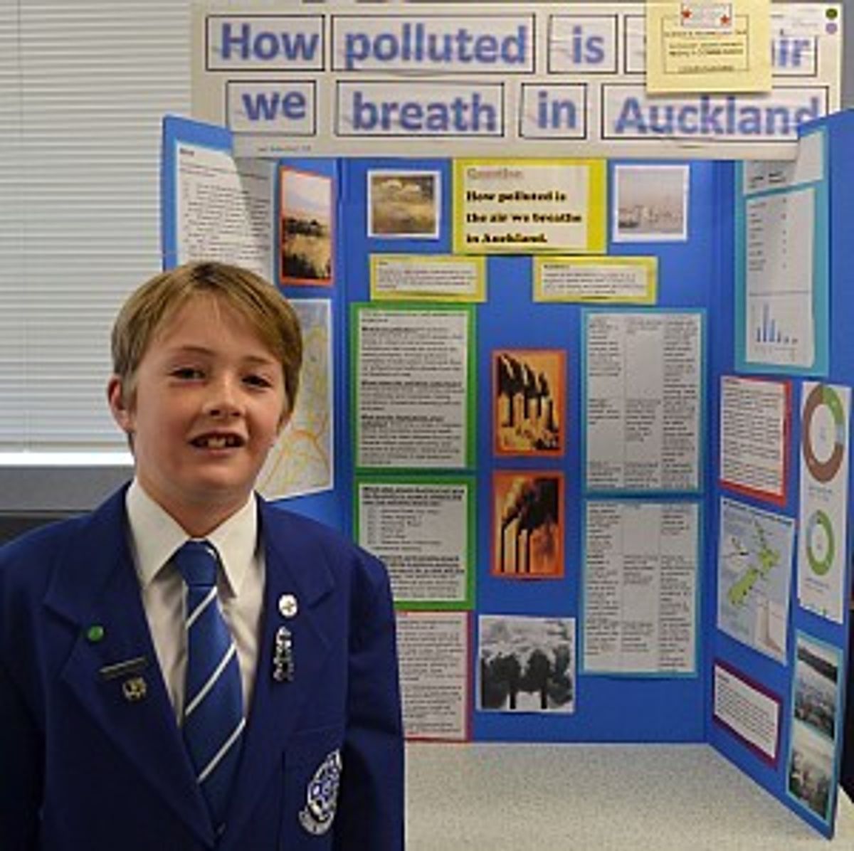 Jett Robertson was awarded the Year 7-8 'RIMU Auckland Council Award for 'Planet Earth and Beyond' special prize. His topical investigation, ‘How polluted is the air we breathe in Auckland?’ measured and compared air pollution around Auckland City.