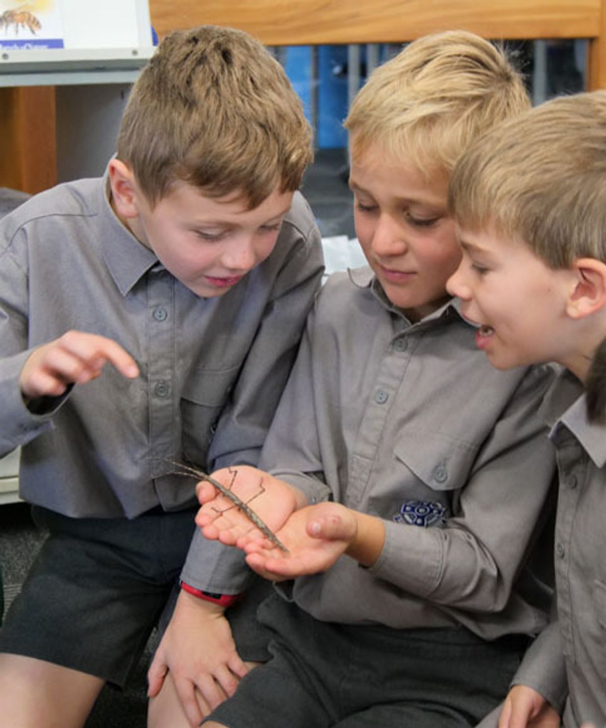 Our visitors brought a display case of insects, along with magnifying glasses for closer inspection, but of even greater interest to the boys was the live exhibit – a range of stick insects! Most were brave enough to hold out their hands for a closer inspection!