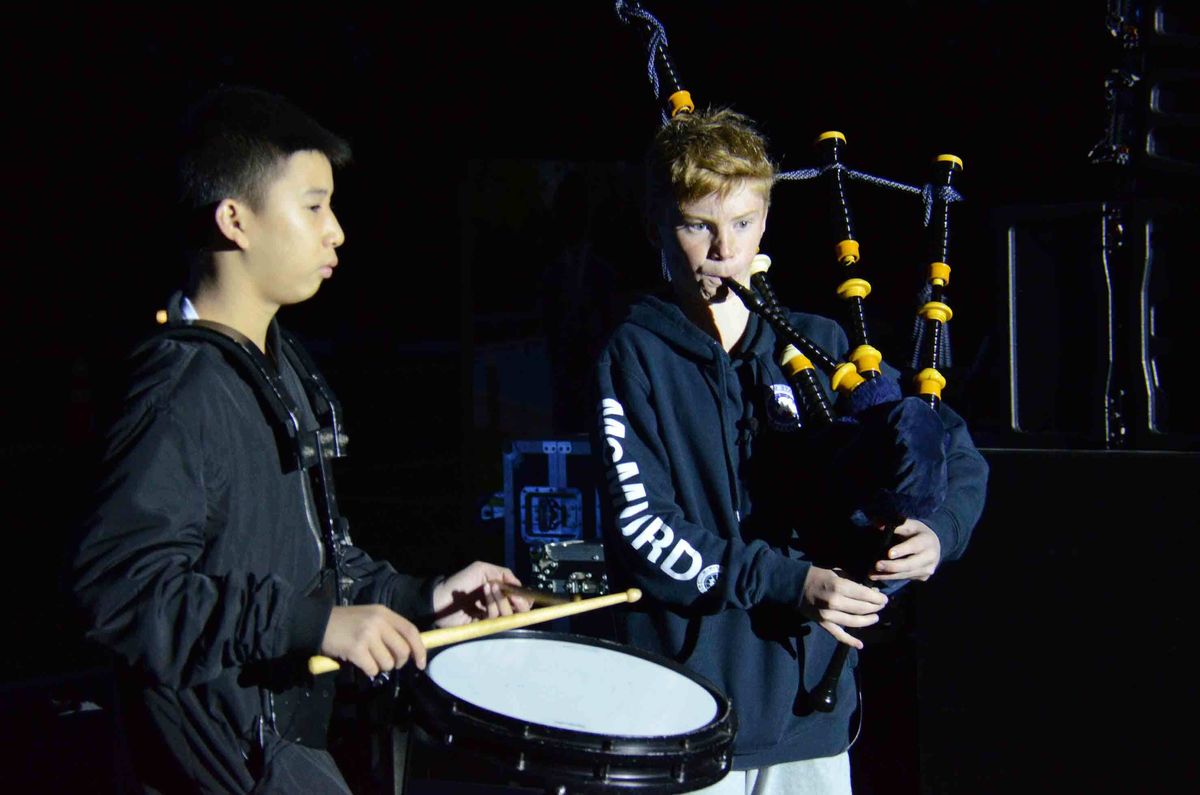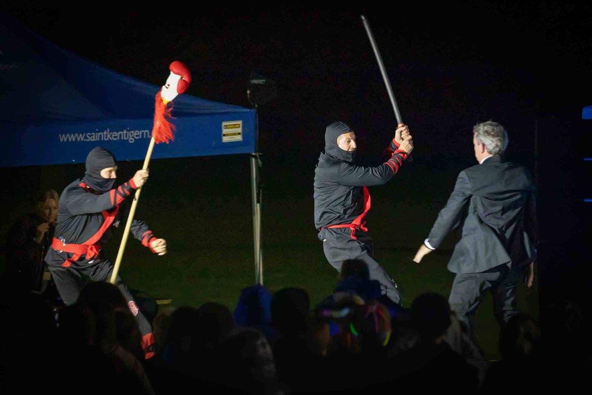 This year’s theme, ‘Spy in the Sky’ gave a distinctly ‘James Bond’ flavour to the evening. As the night sky darkened, Mr Cassie welcomed the Saint Kentigern community. A ‘distressed James Bond girl’ (yes, Reverend Hardie looked very fetching in heels, a frock and a wig!) struggled to the stage prompting a stunt motorbike, lit with flares, to race across the field. With much pomp, ‘James Bond-Cassie’ made his entrance and with a few deft ‘ninja’ moves, rescued the ‘girl’ - and rescued the evening - setting the night sky alive with fireworks, accompanied by the theme songs from various James Bond movies.