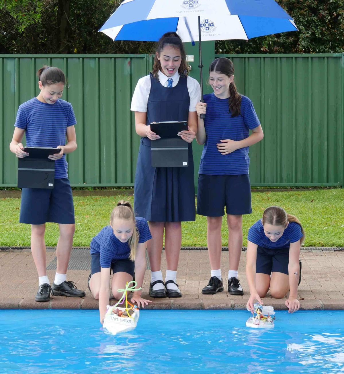 Once they were happy with their designs, they prepared to launch them on the pool - but there was a catch. They were also presented with a heart-breaking, ethical dilemma – there were 130 ‘World Vision refugees’ waiting to be rescued on the far side but they could only take eight. Who would they take and why? This caused some impassioned discussion. Year 8 students, Millie Paris and Brooke Murdoch both said they would choose to take eight children on the vessel because ‘they would live longer and could have a better life ahead of them.’ They added that ‘the parents would be more capable to fight for themselves and their country.’