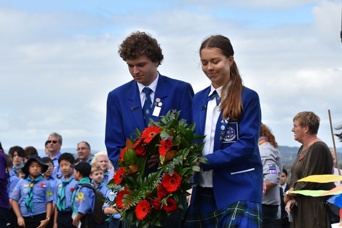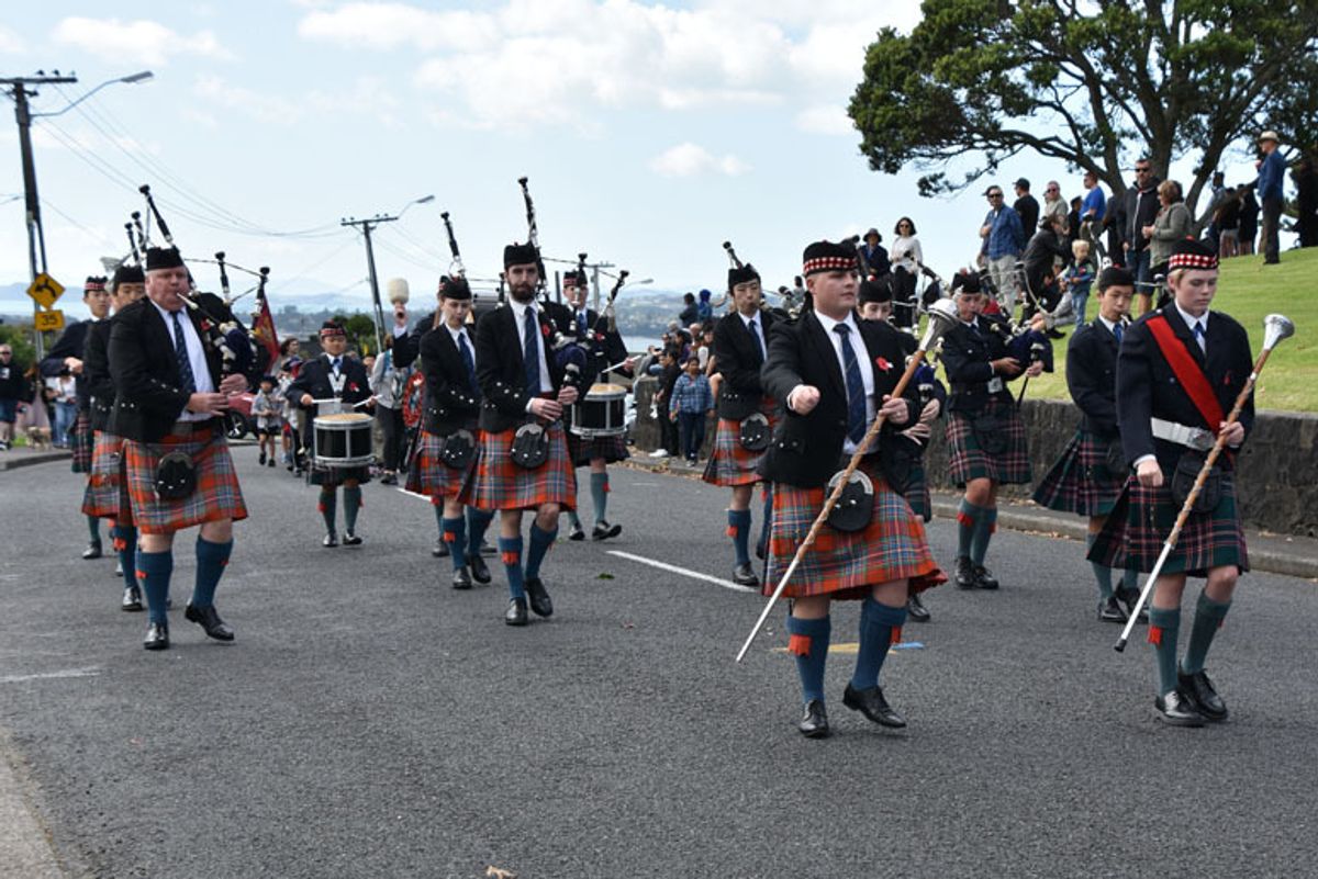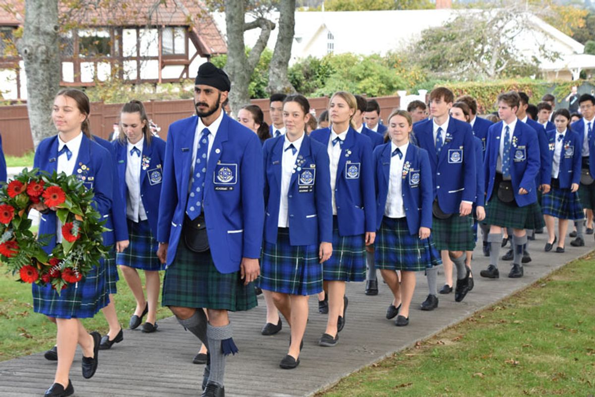 The College Prefects and members of the College and Old Collegians Pipes and Drums joined together to march towards Stockade Hill in Howick on Anzac morning for the commemoration service held there.